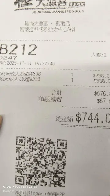 生日🎂当然要去食好味又有质素的食物啦!今晚老公就选了位于观塘的极尚大瀛喜屋,是一间有名的日式放题餐厅。食物款式很多选择,而且每样都即叫即做,新鲜送上,好好食😋美食推介:💛刺身是放题重大亮点,包括新鲜的三文鱼、吞拿鱼、八爪鱼、带子、长脚蟹等,多种选择。每片刺新鲜色,口感滑嫩。三文鱼入口即化,搭配少许芥末和酱油,更能提升其鲜味。带子的鲜甜让喜爱海鲜的我们无法抗拒。💛寿司选择丰富,包括经典的寿司卷、手握寿司及创意寿司。每一款寿司都使用当日新鲜的海鲜,米饭的酸度和口感恰到好处。特别推荐海胆手卷寿司,鲜甜丰富,让人一口接一口。💛海鲜非常不容忽视,竟然有新鲜的盐焗奄仔蟹,蒜蓉焗生蚝、矶烧包鱼、清酒煮沙白蚬等。生蚝肉质鲜美,搭配浓浓蒜油,经烤焗后,味道更上一层。奄仔蟹的肉质鲜甜令人垂涎,是极佳选择,我们还重覆选了几单海鲜,个人就比较喜欢。💛串烧有鸡软骨,鸡翼多种海鲜。烤出来的味道非常香气,鸡软骨是必食之选。💛热盘有鲍鱼汁伴饭、乳鸽、芝麻鸡翼、花胶翅等。每款都非常好食😋💛甜品不容忽视,精致的甜点如泡芙、提拉米苏和水果等,仁食焗榴梿,香香甜甜的,为餐后完美结尾画上句号。服务人员专业且友善,始终保持微笑,对菜单上的每一项都能提供详细介绍,随时关注顾客的需求,让人感到宾至如归。…查看更多