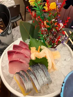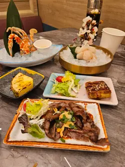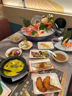 食放题,唔易饱肚又较回本,唔使多讲都喺刺身啦,10多款就拣啲少食、又贵价啲,包括松叶蟹脚、大赤虾、蓝鳍吞拿鱼、北海道鲜带子、北寄贝、象拔蚌,师傅更摆得好靓仔,更以冰镇住,绝不马虎。整体食落质素唔错,蟹脚有海水嘅咸鲜味,鱼生鲜味十足,贝类又具咬口,值回票价。另一分类嘅创作刺身,都试咗4款:酒醉鲍鱼、酱油乳山蚝、泰式虎虾及樱桃鹅肝,款款都做得的的骰骰,而且食得出食材高质,味道、口感都上佳。