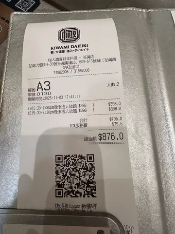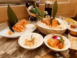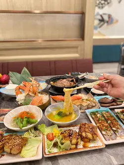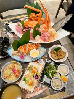 我最爱的放题品牌大喜屋终于插旗荃湾,而且仲系高阶版,叫极•大瀛喜,选址荃湾广场,地方十分宽敞,而且楼底高,好有空间感,和我钟意的旺角新世纪的殿•大喜屋一样,感觉又大又舒服!荃湾店系唯一一间,有A、B餐拣的餐厅,我地当然拣乜都有得食嘅B餐。刺身拼盘先来,三文鱼、油甘鱼、北海道带子、象拔蚌、甜虾、松叶蟹脚、蓝鲸吞拿鱼、赤贝、大赤虾、金枪鱼腩刺身等,每件都新鲜肥美!尤其金枪鱼腩刺身,粉红粉嫩的,油脂满泻,真系超级好味。我自己一人都食左成20件!好满足。B餐一定要食臻品鲜冻红花蟹、上汤芝士焗龙虾伊面、A5黑毛和牛薄烧及鳕鱼干海胆吞拿鱼Taco。冻花蟹大大只够肉厚,Taco又香又脆,伊面及薄烧都好好味~我地仲食左红烧蟹肉花胶翅、吉品鲍汁珍宝鲍鱼一口花菇饭、酒醉鲍鱼香芒滋味鱼生薄脆及酥炸桶蚝。烧物有盐烧牛舌、烧温室甜菠萝、羊架、西京烧比目鱼、蒲烧鳗鱼,仲有我最爱的烧金枕头榴梿。金银蒜蓉粉丝蒸蛏子皇只只都肥美鲜甜,一人食了差不多10只!男友钟意饮啤酒,呢度啲生啤都系任饮,一次过饮个够。仲有一定要食立鳞烧伴黑松露,啲鳞超脆,完全可以拍得住日本餐厅!基本上试晒啲精选食物,我地已经食唔落寿司,所以只能放弃,将最后的胃纳留俾法式面包开心果诱惑!这个面包造型得意,上面淋了开心果酱和一大球雪糕,但我地略嫌太淡,所以用日本版Häagen-Dazs雪糕捞入去食,简直一绝!食埋个木瓜炖雪燕,满意收手了。…查看更多
