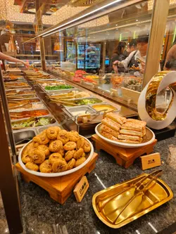 小弟向来都好钟意食甜品,所以,临尾点都要留番两乘空间俾甜品,先试咝二维码落单嘅海燕窝椰汁炖木瓜同法式面包开心果诱惑,前者炖得够火喉,木瓜又腍又甜,加埋椰汁,好润;而后者卖相极具打卡感,面包外脆内软,衬上云呢拿雪糕同开心果酱,绝对喺甜魔诱惑。终极一战喺晌自助区拎番嚟嘅「拼盘」,有Häagen-Dazs雪糕、Dreyer’s雪糕、榴梿雪条、榴梿大福、芒果糯米糍、芝士挞、芝士饼、焗榴梿布甸及蜜瓜软雪糕配Nutella榛子朱古力酱,原来呢部Nutella机暂时喺全港独有,加咗当然好食好多,至于其他甜品,都同样好味,实在大满足