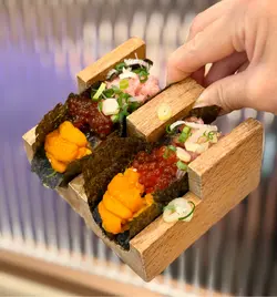 既然选咗「放题B」,第一转就梗喺试晒所有菜式啦,包括:鳕鱼干海胆吞拿鱼蓉Taco、拖罗、火炙A5和牛伴海胆、海胆三文鱼籽亲子杯、北海道带子吞拿鱼蓉鱼籽杯、鲷鱼薄切、鱼籽酱配饼干、上汤芝士焗龙虾伊面底、油盐焗奄仔蟹、皇子糯米乳猪。款款都卖相精致,一啲都睇唔出喺放题出品,同晌日式餐厅食嘅无分别,而且,用料新鲜,食材嘅配搭亦有心思,个人推荐鳕鱼干海胆吞拿鱼蓉Taco、北海道带子吞拿鱼蓉鱼籽杯、火炙A5和牛伴海胆,当然其他都好食,但呢3款晌食材配搭上好有惊喜,味道丰富。
