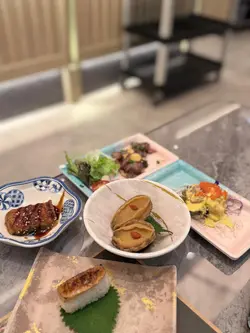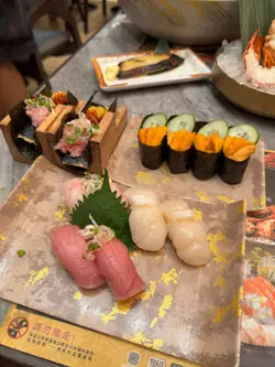 食放題,唔易飽肚又較回本,唔使多講都喺刺身啦,10多款就揀啲少食、又貴價啲,包括松葉蟹腳、大赤蝦、藍鰭吞拿魚、北海道鮮帶子、北寄貝、象拔蚌,師傅更擺得好靚仔,更以冰鎮住,絕不馬虎。整體食落質素唔錯,蟹腳有海水嘅鹹鮮味,魚生鮮味十足,貝類又具咬口,值回票價。另一分類嘅創作刺身,都試咗4款:酒醉鮑魚、醬油乳山蠔、泰式虎蝦及櫻桃鵝肝,款款都做得的的骰骰,而且食得出食材高質,味道、口感都上佳。