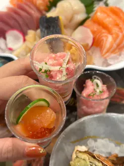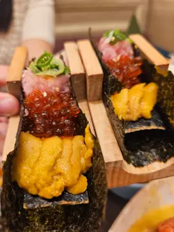 既然選咗「放題B」,第一轉就梗喺試晒所有菜式啦,包括:鱈魚乾海膽吞拿魚蓉Taco、拖羅、火炙A5和牛伴海膽、海膽三文魚籽親子杯、北海道帶子吞拿魚蓉魚籽杯、鯛魚薄切、魚籽醬配餅乾、上湯芝士焗龍蝦伊麵底、油鹽焗奄仔蟹、皇子糯米乳豬。款款都賣相精緻,一啲都睇唔出喺放題出品,同晌日式餐廳食嘅無分別,而且,用料新鮮,食材嘅配搭亦有心思,個人推薦鱈魚乾海膽吞拿魚蓉Taco、北海道帶子吞拿魚蓉魚籽杯、火炙A5和牛伴海膽,當然其他都好食,但呢3款晌食材配搭上好有驚喜,味道豐富。