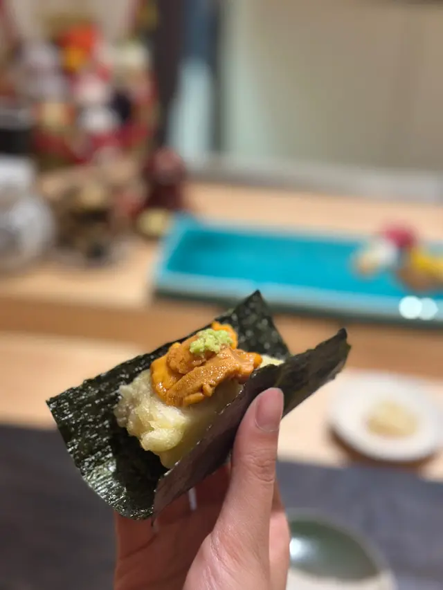 天后站附近有好多食日本菜餐館,今日就去咗「榊原」,位置相當方便!Lunch menu 有3款,而我哋就揀咗蝉時雨 ($668/位)有16品,當中包括刺身、壽司、和食、雲丹和卷物!每逢食日本菜,我哋都喜歡一邊飲清酒,一邊享受我哋嘅美食,今日我哋都要了天賦純米吟釀($180),入口非常順滑!茶碗蒸 - 滑滑的蛋,𥚃面係仲有蟹肉同魚肉!北寄貝 - 下面有蘿蔔苗配埋醋汁,非常鮮甜牡丹蝦 - 師傅已經將蝦膏同蝦肉擺在眼前,肉質爽口日本切碎墨魚 - 上面有三文魚子,增添美味燒鰆魚 - 上面還舖上炸蒜芝麻希魚天婦羅 + 南瓜天婦羅 - 炸醬很薄新鮮赤貝壽司 - 爽口尾長鯛魚壽司 - 好鮮甜葉血引雄鰤魚壽司 - 肉質鮮美深海池魚壽司 - 肉質細緻爽口北海道銀鱈魚壽司 - 肉質肥美大拖羅壽司 - 入口即溶,味道濃郁北海道馬糞海膽 - 一個黃馬糞海膽加一個赤馬糞海膽,加埋紫菜食,味道一流中拖羅蔥手卷 - 裏面混合天婦羅脆脆,提升口感蛋布甸 - 原來係湖北蛋加蘭王蛋做成的,唔怪得蛋味咁濃郁啦!麵豉湯北海道抹茶雪糕整體而言,份量十足,新鮮食材,抵食嘅午市Omakase!…查看更多