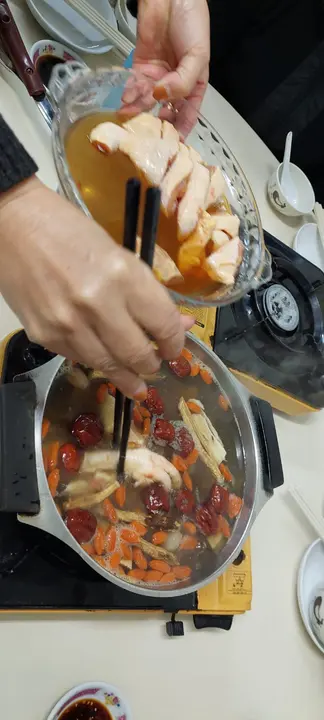 介绍返隐世小店,舖仔细细佢地个药膳醉鸡煲超足料🐥🐥🐥🐥大量药材,但又唔觉苦🤤🤤🤤🤤有党参、当归、淮山、杞子甜味来自大量桂圆、红枣店员教放一半煲7分钟先食完再放另一半再煲5分钟D鸡超滑弹牙😋 😋😋😋第二转我地加埋d酒落去味道更加提升🥰🥰🥰🥰另外仲叫左个拼盘打边炉外脏比较多,唔食既朋友要留意返啦有猪润、猪腰、猪肠🐷 🐷🐷🐷好新鲜👍🏿👍🏿👍🏿仲有鱼蛋同云吞