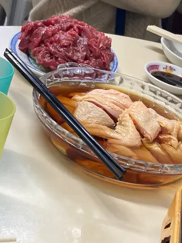 又系梅窝朋友介绍既梅窝道地美食干净企理既茶餐厅格局一入到铺头已经闻到好香既药膳醉鸡味我地4个人叫左一只鸡 一碟生菜 一碟滑牛一只鸡有2大盆 落第一次煮7分钟 鸡肉好嫩滑落第2次就倒埋成盆醉鸡汁落去水滚之后饮左一啖汤 少少酒味加埋甜甜地既药膳味 真系欲罢不能 药材汤底入面好多红枣桂圆杞子 越煲越甜 最尾我地差唔多饮哂d汤咁滞另外亦要赞下个手切滑牛 虽然下面有生菜垫底 但份量其实好多 每片都浓牛味又厚肉 渌落药膳汤底更带出少少甜味 点埋铺头既秘制豉油真系一流打边炉最尾通常落个乌冬结尾呢度无乌冬 我地叫左一碗米粉一碗河粉佢既河粉唔系好阔好大片个种 反而有d似乌冬~用个勺放落汤度烚一阵 索左醉鸡汤既味真系不得了第一次打边炉落河粉米粉 竟然系咁正😏其中一个frd唔太食得酒味既野佢叫左鸡粥+南乳猪手鸡粥煲得好绵好入味 南乳猪手都好正 南乳味唔会太咸 下面d生菜沾左南乳汁食落更加甜呢间真系食过翻寻味 下次都会为左佢再入尼梅窝😋