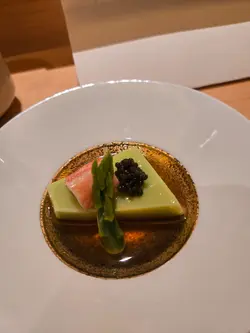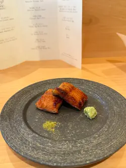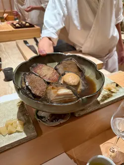 真心分享一家值得回访的香港Omakase——榛Hashibami。没有夸张的吹捧,只有实实在在的味觉记忆。🍳 鲍鱼松茸茶碗蒸 嫩滑蒸蛋里藏着弹牙鲍鱼,松茸香气温柔,最爱那勺脆米,悄悄增加了口感层次,一口就惊艳。🐟 紫苏左口鱼刺身 清爽的左口鱼裹着紫苏叶,蘸上师傅特调的海胆酱——酸中带浓,恰好打开味蕾。🦀 自家制芦笋豆腐脑配松叶蟹 豆腐脑细腻豆香十足,北海道松叶蟹肉甜嫩,搭配芦笋的清新,整体淡雅却印象深刻。🔥 静冈县炭火烧鳗鱼 备长炭火烤出鳗鱼焦香外皮,肉质依然饱满。山椒粉+wasabi酱汁很妙,解腻又提鲜。🍣 寿司环节 • 北海道池鱼:鲜甜柔软,醋饭酸度平衡得刚好 • 富山湾白虾:糯甜口感像在吃云朵 • 吞拿鱼中腹&大腹:中腹柔润,大腹脂香浓郁却不腻 • 生筋子:师傅现场处理一整条,咸鲜爆珠感太满足✨ 压轴招牌:北海道两种海胆天妇罗 紫苏叶裹着海胆轻炸,海胆浓醇creamy,松露香气画龙点睛,温度控制得完美,丝毫不油。🍵 细节见真心 每道菜后师傅会换茶,热茶温度始终刚好,绿茶、焙茶轮换,清口又不抢味道。…查看更多