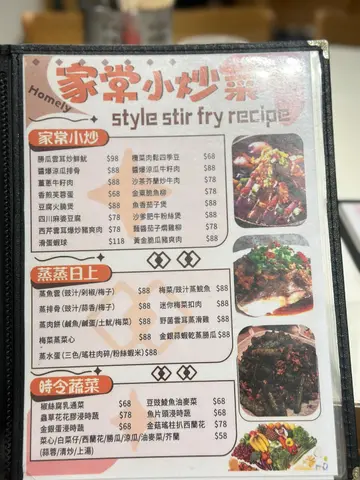 行完山,在上水附近。一于揾附近的地方找餐厅进食。见了这一间餐厅,入去医肚。餐厅分为下层和上层,上层更设有包房。 整体而言,非常有「家」的味道的餐厅最后我们叫了以下食品。1.金薯蜜椒牛柳粒($98)牛柳粒味道香浓,但系有少少黑椒的味道。配上金黄酥脆的薯仔,配上他们的蜜糖酱汁,非常惹味。2.七味金砖豆腐($68)佐酒一流的小菜,份量非常多,每一粒都外脆内软。3.一品镇江骨($88)镇江骨上菜的味道非常香浓,陈醋味非常香浓。酸甜味十足,是一个开胃的小菜。4.花胶鸡煲翅($68/位)奶黄色的花胶鸡煲翅,用料十足,有大大的一条花胶,鸡汤味浓。5.椒丝腐乳通菜($68)新鲜爽口的通菜,配上腐乳酱汁。6.沙爹肥牛粉丝煲($88)平时必叫的肥牛金菇粉丝煲,酱汁香浓,还配有大量的粉丝,每一口粉丝都挂满了酱汁的味道。正7.柠檬茶(热)($10)8.柑桔蜜(热)($12)