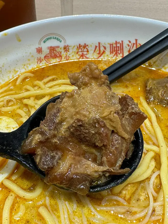 其實榮少喇沙喺屯門開咗之後已經食過好幾次,不過一直因為個賣相太醜而無介紹🫢😂 但呢到嘅喇沙又真係幾出色,而且價錢合理,都幾值得推介!啲相醜少少都唔緊要啦🥹 榮少嘅喇沙湯唔會好稀,味道係椰香味偏重同埋偏濃味嘅,帶少少辣味同香料味,略為油咗少少,但係整體飲落係香濃嘅😛 可以揀配唔同粉麵同餸,我哋落咗單之後見左右兩台都叫咗燒雞,好似幾吸引,下次去要試下先得!!•🥢 軟滑龍脷魚喇沙 $60睇相嘅時候以為係煎魚柳,但上菜先知原來都係炸嘅🙈 龍脷魚係好滑嘅,不過個炸衣可以話係零分😵💫 炸衣表面好油,大部分仲好濕好腍🫠 好似無炸得透咁,但入面嘅魚柳係熱同埋熟嘅🫣 希望只係嗰日廚房失準啦😬麵底就揀咗油麵溝米粉,係無得輸嘅配搭,兩款都好吸湯👍🏼•🥢 豬軟骨喇沙 $50豬軟骨有3大嚿,超級腍,無輪係肉定軟骨都煮到腍晒,好易咬開,而且好入味!😍所以呢到嘅豬軟骨好似都幾出名~ 揀咗喇沙配瀨粉同米粉,不過瀨粉本身比較滑身,唔會掛湯,感覺配喇沙就有啲失色😥•🥢 二人小食拼盤 $32有蝦餅、蝦春卷同雞翼,不過3樣都係炸嘅,炸物有啲太油,蝦餅同蝦春卷都好食嘅,但就細件咗少少,雞翼入面有啲紅,唔知係未熟晒定急凍果陣啲血水😦 …查看更多