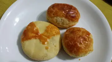 中式甜点,真系太久没有食,荣华饼家有齐你想食的甜鉼老婆饼,冬瓜蓉吾会太甜,蛋黄莲蓉酥外皮松脆,莲蓉甜度适中,最值得我选的是皮蛋酥,因内里有我喜爱的酸姜,夹杂着皮蛋,口感刚好,中和了莲蓉的甜度,好合和心意,超好。