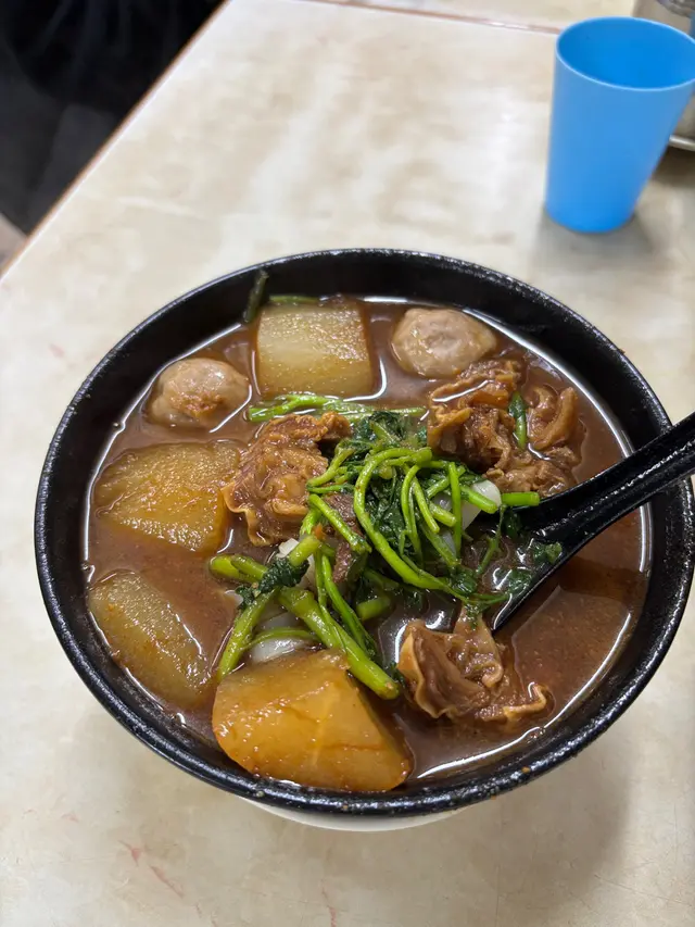 呢度嘅招牌係腩汁湯底,一上桌就被濃郁嘅香氣!湯底濃厚入味,,鍾意濃味嘅朋友一定大愛!(不過如果偏好清淡,可能會覺得稍為鹹咗啲,建議同店員講想要淡啲嘅湯底!)蘿蔔清甜爽口,吸收腩汁精華,墨魚頭彈牙鮮脆,咬落滿口海鮮香;豬紅嫩滑入味;魚肉春卷略為普通,下次就未必再點呢一樣!上菜速度都算快,午餐時段等咗一陣就有位要咩餸 $41x2 (兩碗雙拼)▫️蘿蔔▫️魚肉春卷▫️豬紅▫️墨魚頭.麵底🍜▫️米線▫️粗麵.湯底🥣▫️腩汁…查看更多
