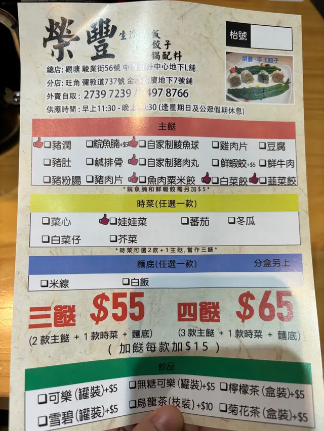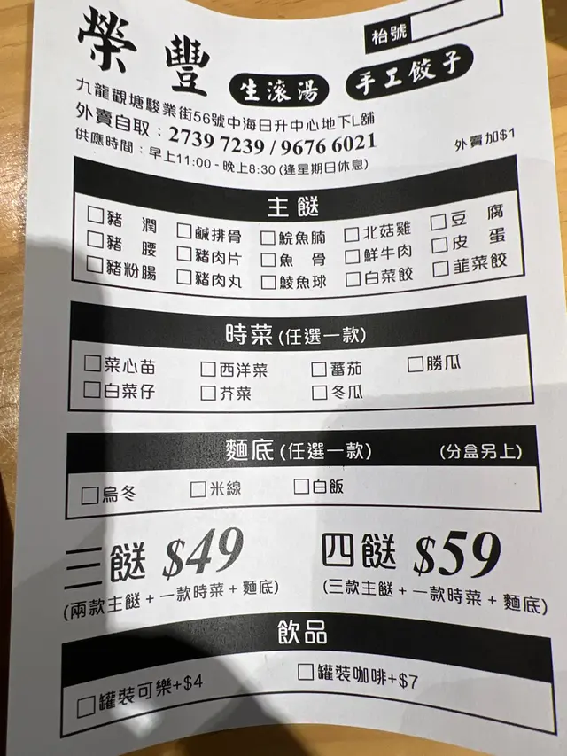 今日喺觀塘嘅榮豐手工餃子店用餐,整體感受非常愉快。店內環境簡潔明亮,給人一種溫馨嘅感覺,適合朋友聚餐或者家人一齊嚟享受美食。我點咗個「3餸面」,包括韭菜水餃、雞肉同埋芥菜米線。首先,韭菜水餃真係好味,餃皮薄而有彈性,包住嘅餡料鮮嫩多汁,韭菜嘅香氣非常濃郁,讓人一口接一口。每一口都能感受到新鮮食材帶來嘅美味。接住嚟,雞肉嘅口感亦相當出色。雞肉經過精心醃製,味道入味,搭配一啲特製醬油,增添咗層次感。再加上搭配嘅米線,滑順同時吸附咗雞肉嘅汁,讓整碗米線更加美味。最後,芥菜米線就係一個清新嘅選擇,芥菜嘅清脆口感同米線嘅滑順形成咗絕妙嘅對比,令整體餐點更加豐富。整體而言,榮豐手工餃子店嘅食物質素高,價格合理,非常值得一試。如果你鍾意手工餃子或者希望喺觀塘搵到一個舒適嘅用餐場所,榮豐絕對係一個唔錯嘅選擇!…查看更多