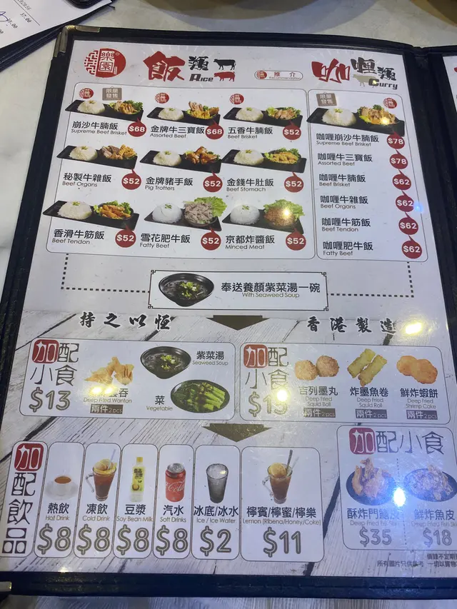 中午同同事去樂園魚旦專家食飯叫咗個 牛腩米粉配水餃($49)同 牛腩河粉配魚旦($49)再加杯 **凍檸樂(+$8)兩個人埋單$106喺而家乜都貴嘅香港算係幾抵食先講 牛腩米粉湯底清甜,牛腩煮得夠淋咬落去有口感又唔會韌米粉吸曬湯汁,食落好入味水餃係韭菜餡,皮薄餡多咬開有肉汁,可惜只得兩嚿,唔夠喉同事叫嘅 牛腩河粉都幾好河粉滑溜,腩汁濃郁但唔會過鹹魚旦係招牌,的確彈牙整體來講,樂園嘅食物水準穩定價錢合理尤其適合附近返工嘅人快食一餐環境座位乾淨上菜速度夠快lunch time 趕時間都唔使等好耐如果喺九龍灣返工,呢度係一個唔錯嘅飯堂選擇…查看更多