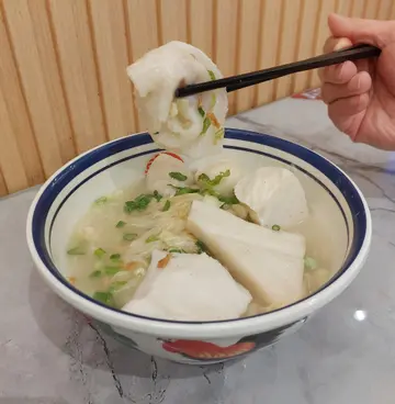 四宝丸有招牌鱼蛋、黄金鱼片头、肉丸同鱼皮饺。鱼蛋爽弹软腍,鱼味浓而不腥;鱼饺厚身爽滑,而片头亦鲜味十足,配微弹有嚼劲嘅粗面吃,够晒饱肚。