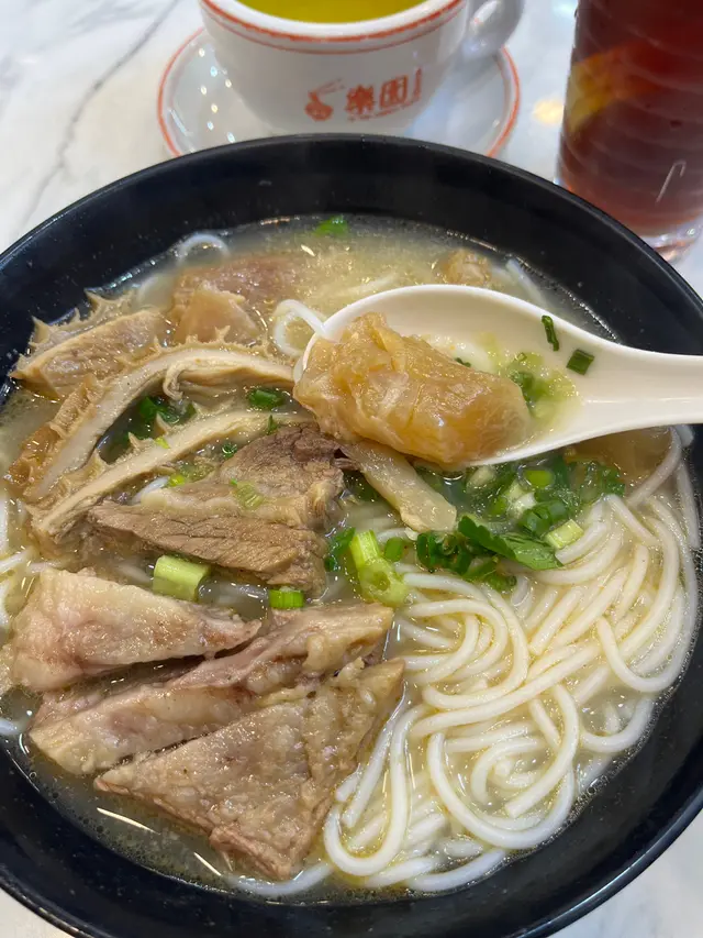 樂園餐廳的秘製牛雜面和招牌魚蛋面,絕對是香港地道美食的完美演繹!牛雜軟腍入味,湯底濃郁香醇,麵條爽滑彈牙,每一口都充滿著街頭小吃的風味。招牌魚蛋面則以彈牙的魚蛋和鮮甜的湯底取勝,配上爽脆的蘿蔔,更添口感。加配的蘿蔔爽脆清甜,豆漿香濃順滑,完美地平衡了麵食的油膩感。整體而言,這頓餐點不僅美味可口,而且份量十足,絕對能滿足你的味蕾,讓你感受到香港美食的魅力。人均消費大約40至50蚊相當抵食,上餐速度都十分之快。查看更多