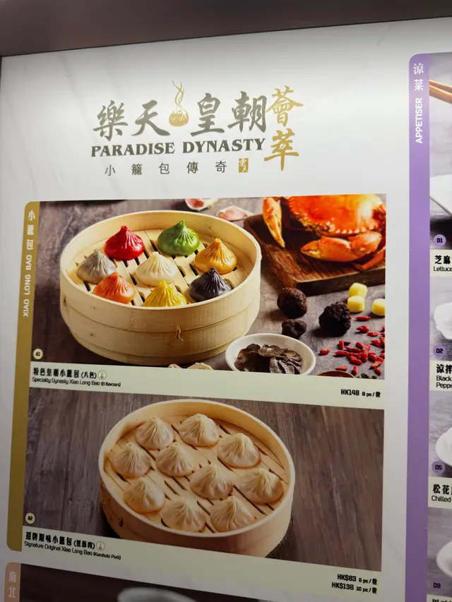 招牌原味小籠包(黑豚肉) ($138) ★★★★✰樂天皇朝的特色菜是很多不同味道及不同色素的小籠包,不過我認為都是原味最好食。小籠包湯汁飽滿,外皮厚度均勻。雖然略嫌肉餡可以更滑口,不過已算挺具質素的小籠包。