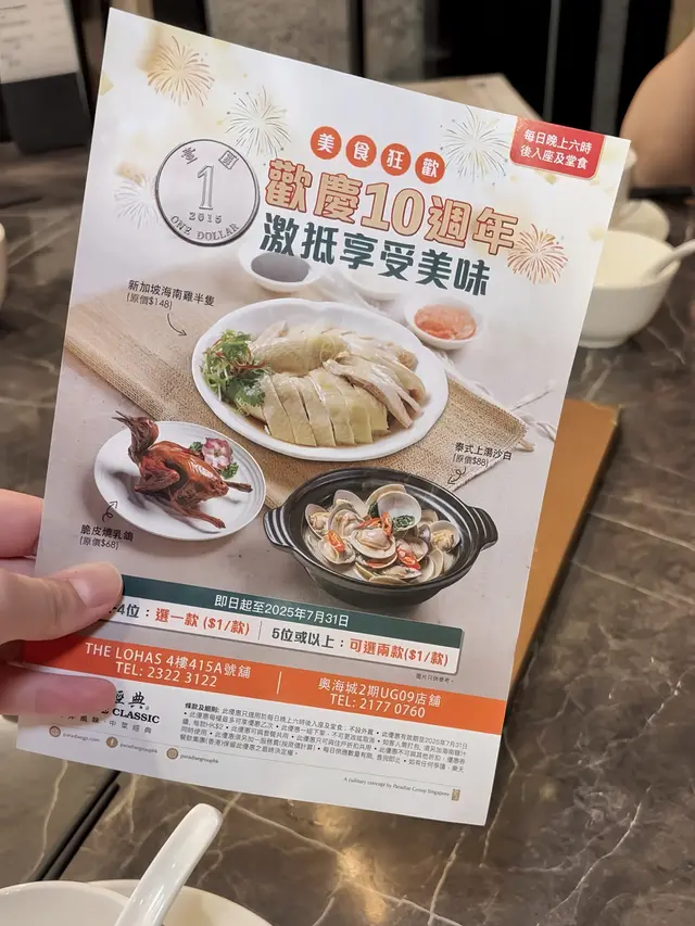 「乐天经典」位于奥海城二期,环境开扬舒服,主打新加坡同马来西风味菜式,价钱合理之余,份量都几足料!今次同朋友试咗佢哋嘅二人餐,再加咗几款招牌菜,整体水准唔错,值得同大家分享~✨✿ ✫ ✿ ✿ ✫ ✿ ✿ ✫ ✿ ✿ ✫ ✿ ✿ ✫ ✿ ✿ ✫ ✿ ✿ ✫🥢星马金砖豆腐呢道金砖豆腐外脆内软,炸得金黄香口,一咬落去豆腐嘅嫩滑即刻涌出嚟!表面洒咗少少椒盐同香料,带出微微嘅星马风味,点埋甜辣酱一齐食,更加开胃。虽然系前菜,但系份量都几大方,两个人食刚刚好,唔会太滞。豆腐控必试!👍🥢星洲黑胡椒蟹(小)黑胡椒蟹系今餐嘅亮点之一!蟹肉鲜甜,酱汁浓郁得嚟唔会太辣,黑胡椒嘅香气完全渗入蟹肉里面,惹味十足!虽然系细份,但蟹件都几多,啖啖肉食得好满足。酱汁捞饭真系一流,如果钟意重口味嘅朋友,一定会爱上!🥢姜葱爆生鱼片(小)鱼片切得厚薄适中,炒得刚刚熟,口感滑溜得嚟带点弹牙。姜葱嘅香气完全爆咗出嚟,酱汁较浓郁咸左少少,鱼肉爽弹🥢虾味鱼子虾球炒饭(小)炒饭炒得干身唔油,饭粒分明,虾味同鱼子嘅鲜香完美融合,每一啖都食到虾球嘅弹牙同鱼子嘅爆脆口感!如果镬气重啲会更好,虽然系细份,但两个人分享都够饱🥢招牌酱甘香茅冻甜品方面,香茅冻系冰粉制作,清新得嚟带微微甘香,口感滑溜,食完浓味菜式之后嚟一碗,真系解腻一流!酱汁带少少甜,同香茅嘅清香好夹,唧埋青柠汁更解腻,作为一餐嘅结尾,非常圆满🥢$1 新加坡海南鸡(半只)优惠价$1就食到半只海南鸡,真系抵到烂!鸡肉嫩滑,鸡皮爽口,蘸埋佢哋特制嘅酱油同姜蓉同辣酱,味道更加提升。虽然系优惠菜,但质素一啲都唔马虎又大碟,仲要有鸡髀🥰绝对系必点之选!🥢柠檬姜米水(冻/热)柠檬姜米水清新解渴,甜度适中,冻饮爽口,热饮暖胃,去湿一流✿ ✫ ✿ ✿ ✫ ✿ ✿ ✫ ✿ ✿ ✫ ✿ ✿ ✫ ✿ ✿ ✫ ✿ ✿ ✫✍🏻总评:加🔟服务费:✅👭🏻推荐指数:🌕🌕🌕🌕🌘👭🏻回头指数:🌕🌕🌕🌕🌘👭🏻环境评分:🌕🌕🌕🌕🌘👭🏻服务评分:🌕🌕🌕🌕🌕💰人均消费:$370🗺️ 地址:大角咀海庭道18号奥海城二期UG楼UG09号舖#乐天经典 #奥海城美食 #星马菜 #香港食好西 #抵食二人餐 #镬气小炒 #海南鸡 #优惠 #套餐 …Read More