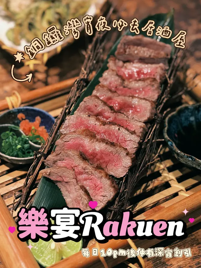 ✨Blingbling美食推介✨📍銅鑼灣🍻樂宴 Rakuen✨銅鑼灣鬧市宵夜必去居酒屋😍💠💠💠💠💠💠💠💠💬深夜食堂 vibes 滿滿🍢,居酒屋感十足,仲有超抵「深宵割引」優惠!就算OT或者收工睇完戯再過黎,都啱晒同朋友chill住傾計嘆杯酒✨🍽️推介菜式:🫛前菜 $20枝豆簡單清新,開胃首選~🫛🦑瑩光魷魚 $39 [深宵割引]夜晚限定超抵!鮮甜魷魚滑溜彈牙,微微鹹香,好適合佐酒🩵🫑炸沖繩苦瓜片 $98香脆可口,炸得乾身無油,帶微微甘苦味,苦瓜控必食,越食越上癮💚🍣白身魚4點刺身併盤 $380每日新鮮直送!以白身魚包住4款刺身,好鮮甜,而且魚肉質滑溜,魚脂甘香☺️🧆牛舌炒蒜心 $80牛舌煙韌彈牙,蒜心清甜爽口,炒得好香但一d都唔油膩🩵🥩輕燒日本產和牛 $320輕輕炙燒嘅和牛,油花分佈平均,入口即溶😍配埋少少醋同山葵,完全提升牛味層次!☺️🦪廣島產蠔松前燒 $138蠔味濃郁又肥美☺️松前燒手法令蠔保留水嫩質感,鮮味十足!🍺三得利頂級生啤酒 $39 [深宵割引]泡沫細膩綿密,入口清爽微苦,酒花香氣撲鼻,喉韻清甜,係宵夜之選🍺🍸三得利角瓶威士忌梳打 $29 [深宵割引]酒體輕盈,帶有少少檸檬清香,清甜之餘又唔會太烈,配串燒啱哂🍋🟩🌟環境評分:💎💎💎💎💎/5🌸服務質素:🌸🌸🌸🌸🌸/5😋食物味道:😋😋😋😋😋/5💰性價比:💰💰💰💰💰/5樂宴 Rakuen@rakuen_cwb📍銅鑼灣登龍街28號永光中心12樓…查看更多