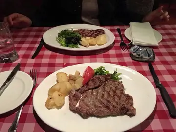 位于湾仔的一间老牌扒房, 可能再理不能光顾了。今次专诚过来品尝括牛扒既滋味。牛扒煮理得恰到好处,虽然不是非常厚身的牛扒,但都比我感觉很好。肉身方便牛扒煮得刚熟,有香浓既扒味,入口嫩滑而且有口感 大。切开一看,肉汁慢慢流出来,简值是非常美味。