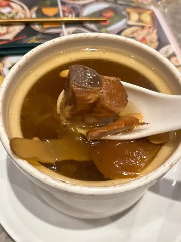 每次行过尖沙咀汉口道,都见到✨乐意点心门口排晒长龙,成日都好奇,究竟有咩咁好食,会咁多人排队等?🤪今次终于食咗佢哋嘅 绝配套餐,仲加咗啲点心同饮品,真系食到停唔低口!环境舒适,服务亲切,喺尖沙咀呢个地段黎讲,性价比真系好唔错!✨荔枝玫瑰茶话说佢哋嘅茶选择好多,除咗传统嘅香片、普洱、菊花,仲有啲特别嘅选择,例如白桃乌龙同荔枝玫瑰茶。我拣咗荔枝玫瑰茶,饮落真系好舒服!有淡淡嘅荔枝甜味,仲有玫瑰嘅花香,解腻又令人心情愉悦。✨笼仔金针云耳蒸鸡饭 + 腊肠(另加 $10)金针同云耳吸晒鸡汁嘅鲜甜,配上软糯嘅米饭,每啖都好有层次感。特别加咗 $10 嘅腊肠真系神来之笔,油香满溢,同豉汁嘅咸香好夹,捞匀一齐食,简直系停唔下来!✨云腿鸡脚炖鲍鱼汤呢个汤真系套餐嘅灵魂!一上枱就闻到浓浓嘅火腿同鸡汤香气,汤头好醇厚但完全唔腻。汤料好有诚意,有只迷你鲍鱼弹嫩,鸡脚炖到软糯入味,饮落暖胃又滋润,真系身心都满足!以套餐汤品黎讲,质素远超预期!✨白灼菜心菜心爽脆又多汁,简单嘅白灼做法突显咗食材嘅新鲜,作为配菜帮忙平衡其他浓味嘅菜式。✨豉椒蒸排骨 ($25)排骨蒸得软嫩入味,豉椒嘅香气好浓,仲有少少辣味提鲜,食到胃口大开!份量适中,适合同其他点心一齐share,热辣辣食系最好味。✨蟹籽烧卖 ($19)皮薄馅靓,蟹籽点缀加分,入口鲜甜多汁,热腾腾食风味最佳。✨鲜虾腐皮卷腐皮炸得香脆,内里嘅鲜虾弹牙多汁,口感对比好强烈。调味唔会太重,保留咗虾嘅鲜甜,系一款经典嘅点心。✨越式米网炸两肠 ($35)呢道越式炸肠外皮酥脆,内里软糯,米网嘅口感特别,为整道菜加分。✨乐意水果茶 ($16)水果茶真系一个惊喜!新鲜生果份量多,饮落清爽又解解腻✨蛋散 ($22)蛋散香脆可口,蛋香好浓,系一款简单但好正嘅甜点。下次再黎,会想试吓其他点心拼盘,期待有更多惊喜!乐意点心📍尖沙咀汉口道19-21号地舖…查看更多