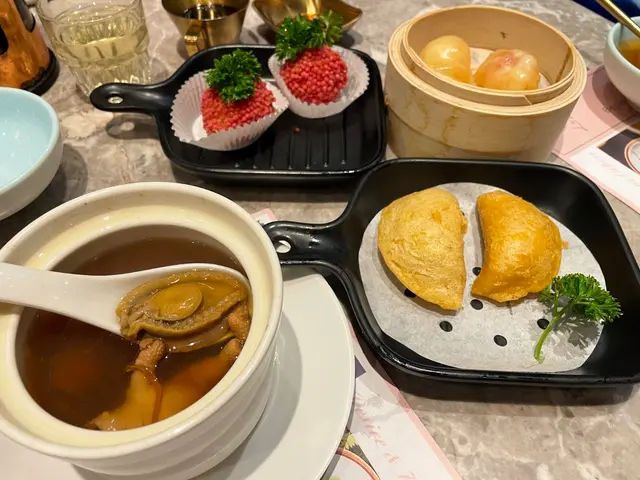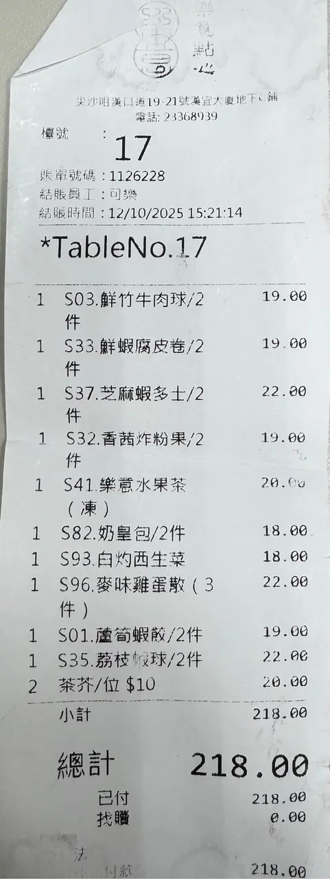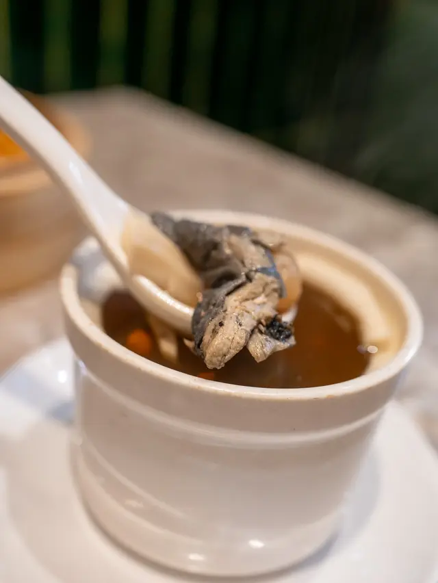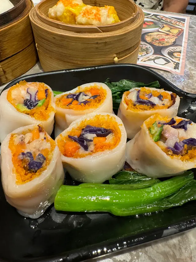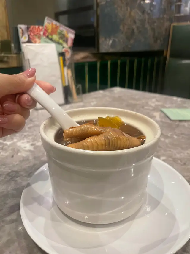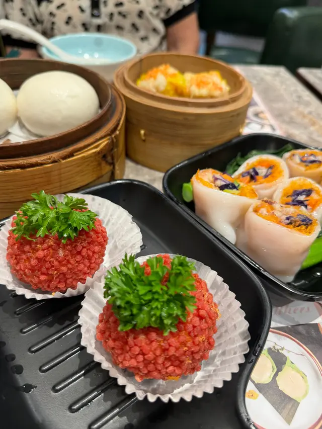 香港有唔少點心專門店,但每次經過尖沙咀 "樂意點心",發現門口排長龍,好奇之下,呢日就去咗食依度嘅絕配套餐,另揀選幾款點心。店內地方雖然唔係好大,但裝修頗有格調,環境舒適,服務親切友善。點心用料上乘,賣相精緻,好比酒店級嘅中菜廳裡嘅點心。點心種類都唔少,無論係傳統蒸點、煎炸、腸粉、包點以至蒸飯和甜品,都應有盡有。而且係即叫即製,保證新鮮熱辣。絕配套餐 $68有一個蒸飯、一個燉湯及可+$10追加精美點心,非常抵食。而且還可以加錢換成比較貴價的食材。這次食好一點,加了$20 轉換為「籠仔蒜蓉海蝦飯」及 +$10 臘腸一份。開邊海蝦肉質彈牙,臘腸肉味香濃,海鮮嘅鮮味被蒸飯所吸收,再加上蒜蓉的蒜香,每一啖都非常享受。「椰子燉烏雞湯」,一上枱就聞到濃濃嘅椰子同烏雞香氣,湯底清甜順喉,飲落暖胃又滋潤,真係身心都滿足!以套餐湯品黎講,質素遠超預期!碧綠叉燒腸粉 $28叉燒份量非常多,肉味濃郁而軟腍,配合有米香又滑溜嘅腸粉,高質。青瓜蜆仔撈汁 $26蜆肉同青瓜份量頗多,蜆肉鮮甜,青瓜爽口,配自家製醬汁,帶少許辣,味道都不錯。芝麻蝦多士 $22蝦多士每一件都好大件,上面鋪滿芝麻增加風味,咬一口特別香脆完全唔油膩,沾一下酸酸甜甜嘅醬汁更滋味。鮮竹牛肉球 $19手打牛肉球都幾大個,肉味濃郁,加入香菜和馬蹄,食落特別爽口。…查看更多