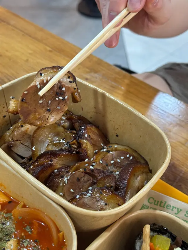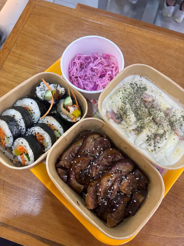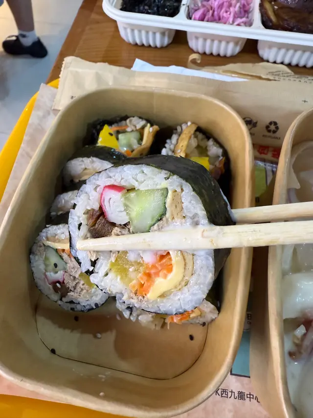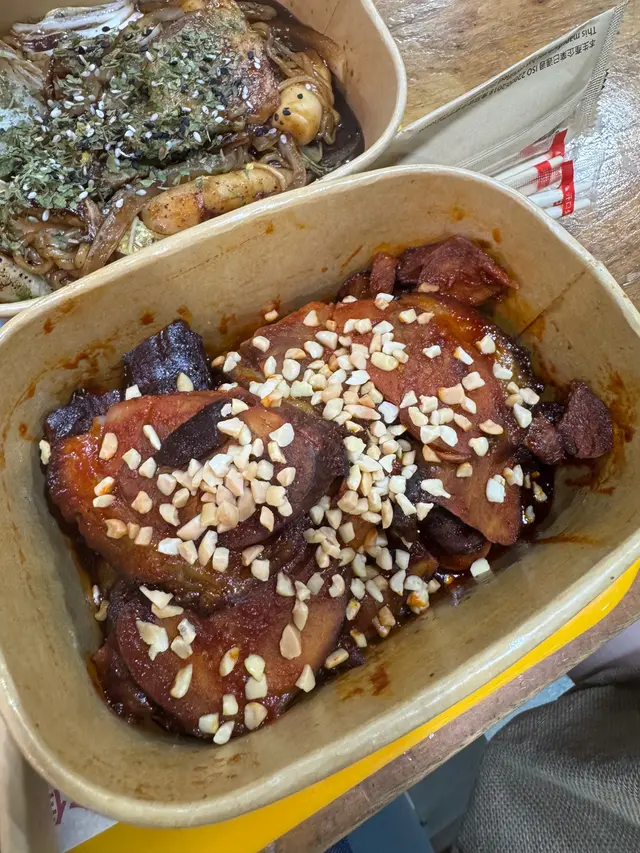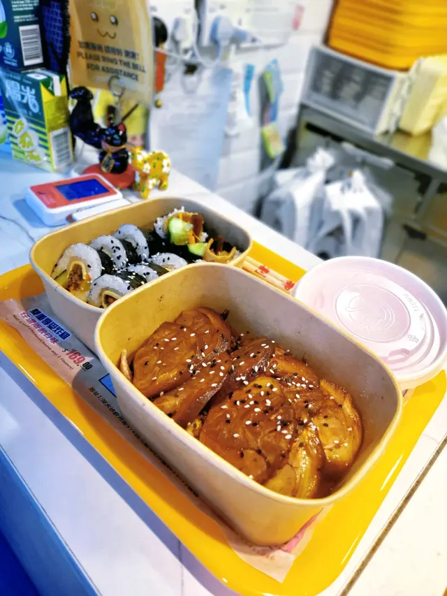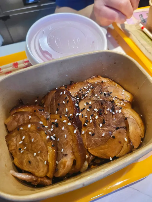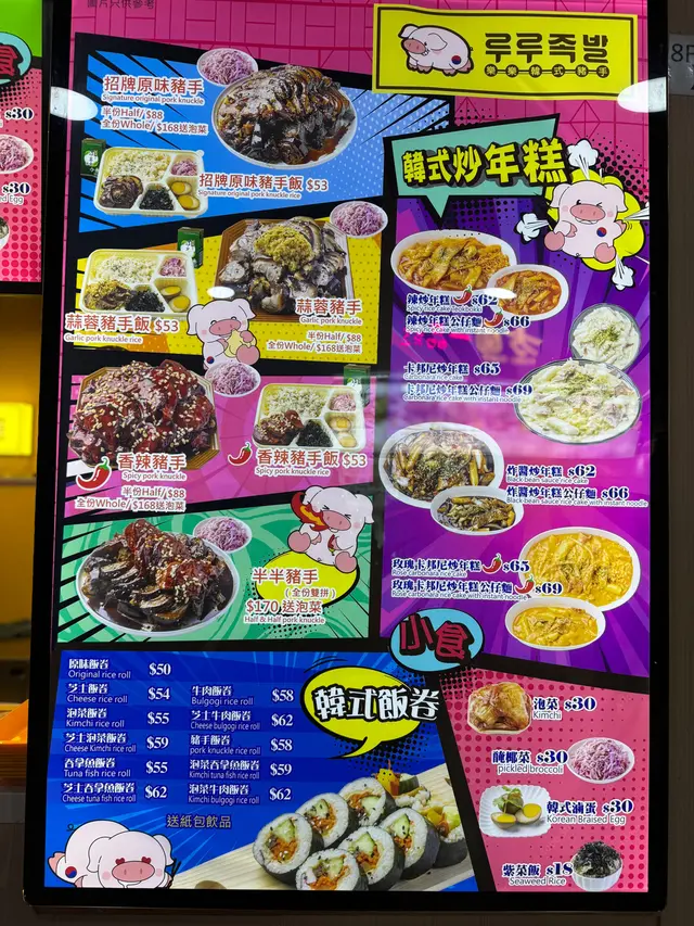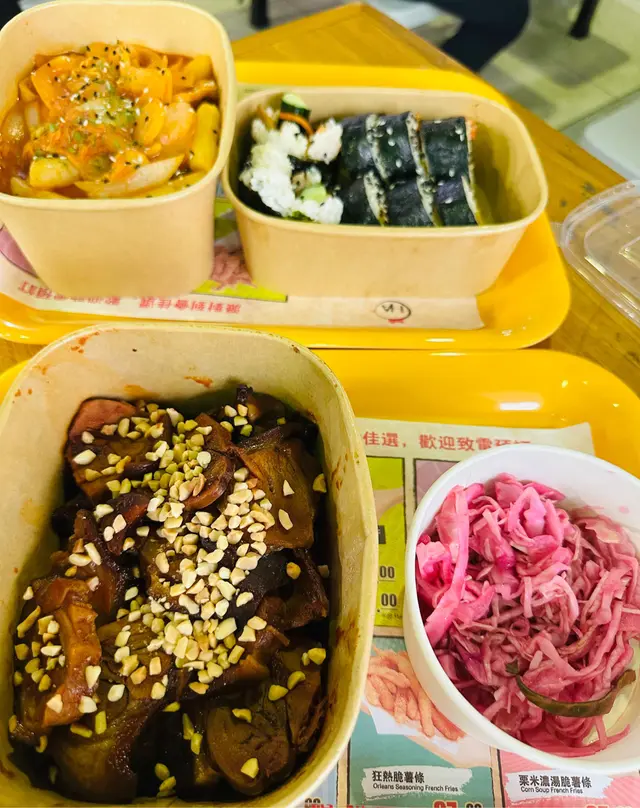 途經西九龍中心,正值午飯時間,睇到呢間之前食過嘅樂樂豬手,突然有啲口痕,就決定食佢喇蒜蓉豬手 $88豬手可以叫全份或者半份,今次就揀咗半份,豬手表面鋪滿蒜蓉,仲灑咗啲黑白芝麻做點綴。豬手肥瘦適中,加埋滿滿嘅蒜蓉食好香口炸醬炒年糕 $62見到炸醬炒年糕,以為係韓式嘅杰身炸醬,點知原來係偏水狀嘅醬汁,除咗主角年糕之外,入面仲有魚餅同埋洋蔥等配料,炸醬汁食落有啲似醬油味,連埋煙韌嘅年糕一齊食原味飯卷 $50另外叫咗一卷原味飯卷,入面有紅蘿蔔、韓式醃蘿蔔、蟹柳等配料,味道清爽,當然都可以沾炸醬汁食,叫飯卷配咗綠茶,可以當套餐咁食…查看更多