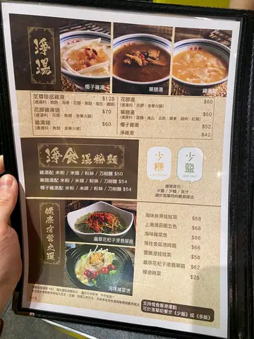 今日朋友相聚,试下乐汤,一入门口就见到怀旧香港装饰,餐牌主打健康无添加菜,叫了二人餐!⭐️砂锅花胶鸡汤翅分量十足,连皮鸡肉、花胶、鱼翅等煲出一层金黄的浓汤,非常浓郁!花胶咬落有厚度,软糯中带烟韧,啖啖满足。鸡胸肉质嫩滑不老,丰有肉香。鱼翅根根分明,矜贵有咬口!养生又滋补!⭐️鲍汁瑶柱冬菇饭米饭做到软糯适中,用以鲍汁提高鲜美,而瑶柱和冬菇粒就丰富整体口感!⭐️云腿浸娃娃菜菜用以高汤煮到软腍入味,加入少许云腿丝,清甜有风味!⭐️花雕醉猪手入口满满的骨胶原,弹牙香嫩,虫草花、酒香清新解腻,令人齿颊留香!…查看更多
