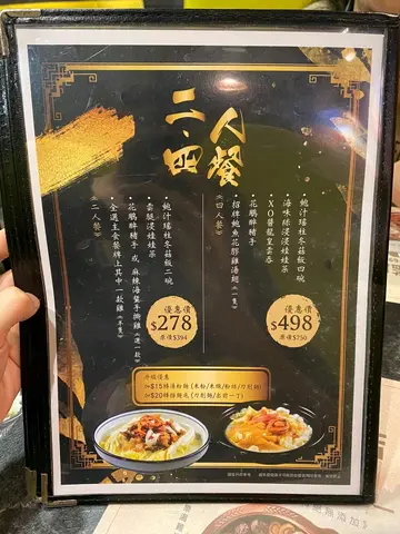 最近,我们一行四人造访了太子楼上既一家餐厅。餐厅环境清静舒适,唔会好嘈,提供左一个舒适既用餐场所。我们点了一份四人套餐,其中包括鲍鱼鱼翅花胶原只鸡窝,上汤海参浸娃娃菜,XO酱龙王云吞,醉猪手。套餐还包括四碗鲍鱼瑶柱饭,但其中一碗转成了药膳米线,另一碗转成了椰子鸡汤刀削面。此外,我们仲点了一份凉拌芥末海蜇手撕鸡同一杯话梅金橘梳打。套餐中的鲍鱼鱼翅花胶原只鸡窝好大窝,份量有足够,鲍鱼都算大只,仲有唔少鱼翅,搭配鲜嫩原只鸡窝,味道鲜美且丰富,而汤底鲜浓,每一口都充满了浓郁的风味,饮完都唔会口渴。上汤海参浸娃娃菜,简单得来精致,娃娃菜经过上汤浸泡,保留左其嫩绿外观同脆爽口感。海参碎亦有唔少!套餐中从包括XO酱龙王云吞和醉猪手。XO酱龙王云吞,每粒云吞都包裹著丰富馅料,令人爱不释口。醉猪手则以其滋味独特既调味汁令人回味无穷。鲍鱼瑶柱饭系这套餐中主打饭菜之一,米饭蓬松香浓,搭配上鲍鱼和瑶柱鲜甜,令味道十分美味。然而,我们将其中一碗饭转成药膳米线,另一碗饭转成了椰子鸡汤刀削面,两碗汤都各有不同,增添左套餐既多样性。小食方面,仲叫左一碟凉拌芥末海蜇手撕鸡。清爽和微辣既口味令人印象深刻。海蜇既爽脆同鸡肉既嫩滑相辅相成,芥末酱的辛辣提升左整个菜品既风味层次。最后,仲叫咗一杯话梅金橘梳打。话梅既酸甜和金橘既清新结合系一齐,完美地搭配左成餐饭!…查看更多