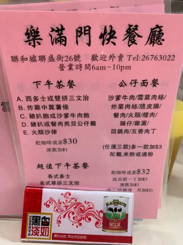 🍴乐满门快餐厅 @粉岭🍴 今日做完野之后,有D肚饿,落左去粉岭食个下午茶顶顶瘾先。 ------------------------------成间铺头既装修就系以前港式茶餐厅既感觉。好耐无食过,所以即刻叫左薯条+鸡翼佢D粗薯条炸得好脆,而且只鸡翼仲热到辣亲我个咀HAHAHAHA。仲叫左个公司三文治过下瘾(TOTAL 有4旧,有一旧已经食左系个肚度),旧餐肉都大大旧,无偷工减料。😍😍一个茶餐 $3X 正常价钱,唔算平 不过不失啦