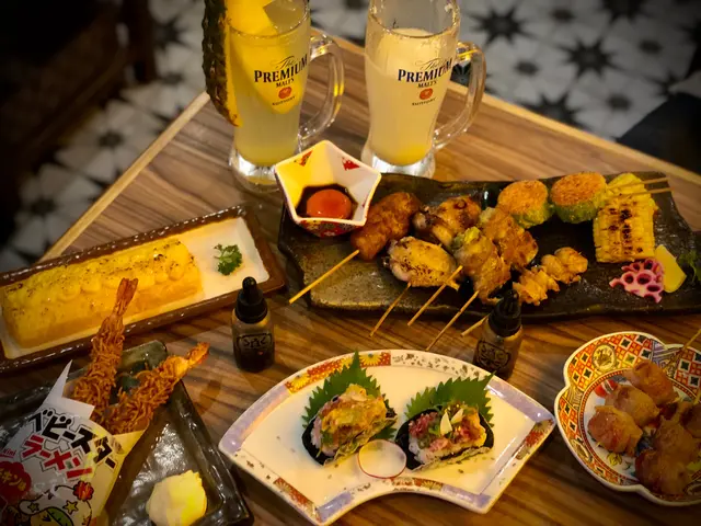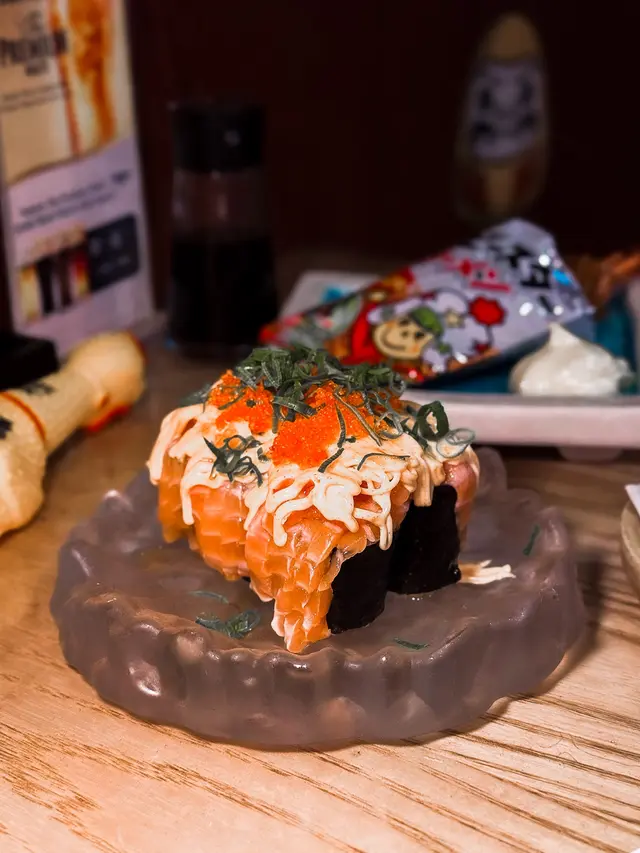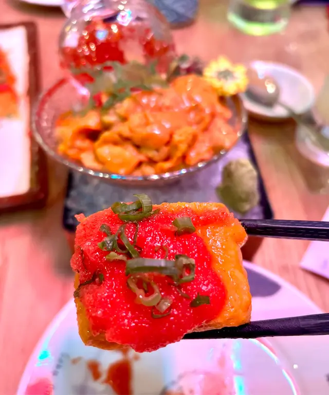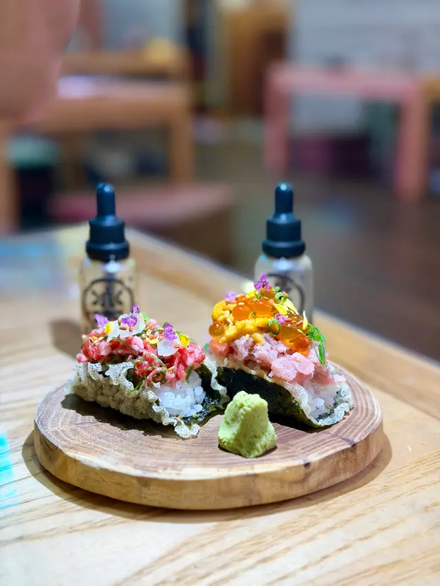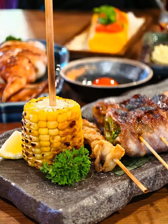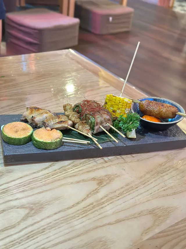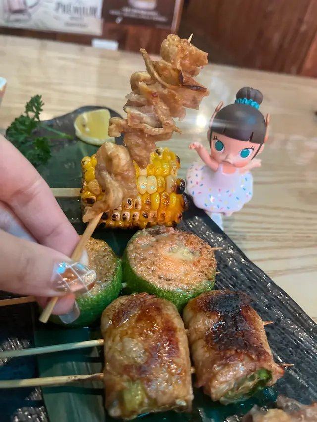 餐廳有濃濃的日本氣息,挺適合拍照的,而且更有榻榻米的餐桌可選,這樣吃起上來更有風味了。而最近剛好出了一個優惠串燒套餐,性價比不錯。串燒combo (188元)一共包括了6款不同的串燒,還有一杯雞尾酒,性價比挺高的,不過要預訂先可以!分別有燒明太子西葫蘆,香菜豚肉卷,鹽燒雞皮,燒雞羽,牛油燒粟米和自家制雞軟骨棒,有菜有肉的,而且都燒得剛好,皮脆肉嫩,帶點焦香。很多人喜歡的雞軟骨棒也有,配上雞蛋一流。自家製鹽檸檬燒酎喝起來清爽又有油香。三文魚層層疊(138元)底下的是青瓜卷,然後上面放滿了三文魚再加上芝士和沙律醬,再經過火炙一下,帶出焦香,吃的時候再加上魚子和蔥花增加香味。三文魚比想像中的更滑嫩,加了沙律醬,整體味道更濃厚。烏賊磯燒(95元)烏賊燒完以後,味道干香,烏賊味特別香濃,口感彈牙。海之幸TACO(78元)下面是吞拿魚蓉,然後放上海膽和三文魚籽,整體鮮味突出,接近入口即化的口味,特別鮮甜。國產和牛他他TACO(78元)上面滿滿的生牛肉他他,用上比較肥美的國產和牛,再加了點蔥花來提味,令整體變得外脆內軟,又有和牛油脂香味。芝士醬厚燒玉子(98元)玉子燒真的很大很厚的,但吃起來不老,蛋味香濃,上面加了芝士醬,還經過火炙來迫出香味,芝士味特濃。吉列童星蝦(2隻)(68元)比較少見,亦很有童年回益的,而且價錢不貴,蝦也大大隻,口感外脆內爽滑。巨峰梳打(52元)味道香甜,口感清爽。…查看更多