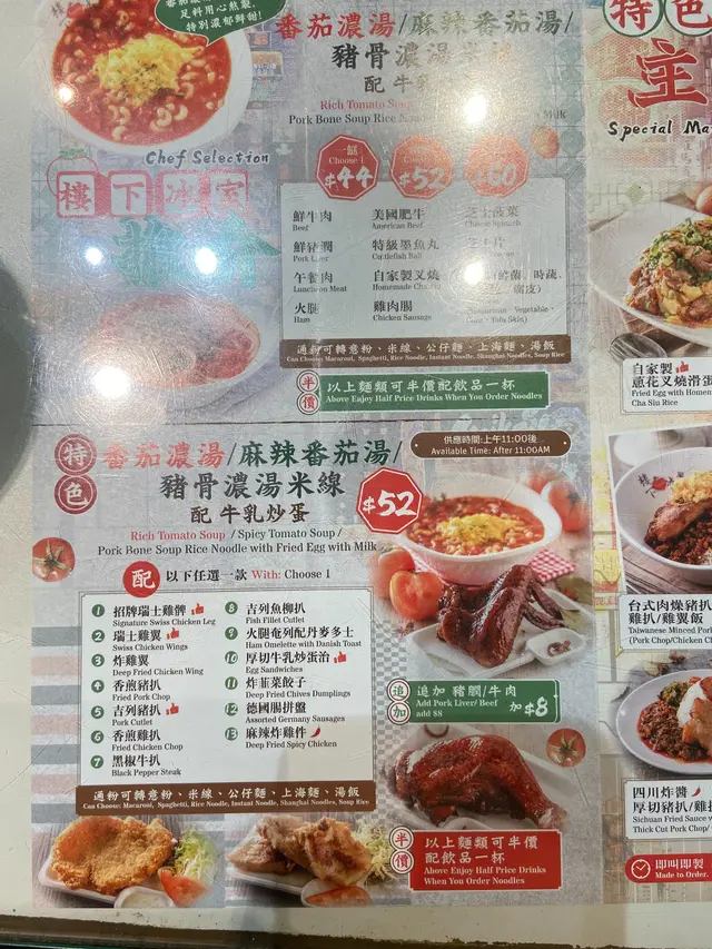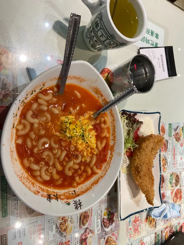 由細食到大的蕃茄炒蛋拌飯是兒時伴我成長的回憶,想當年老媽子話齋又平又有營養,就是這樣養大你班化骨龍🤣🤣🤣荃灣有一店舖(樓下冰室)打正招牌蕃茄濃湯配牛乳滑蛋通粉,想尋回昔日的回憶不防一試店舖裝潢很有懷舊feel,座位寬敞。因下雨天店員都非常細心提醒小心地滑很窩心🥰🥰1.茄蕃湯底配滑牛/牛乳炒蛋~嫩滑溜溜濃香炒蛋入口濃烈蛋香味,牛肉有質感配上豐富蕃茄粒,入口很有層次感,濃郁蕃茄湯底是兒時的回味😋😋2.招牌瑞士雞脾~醬汁可能是㕑司秘製,味道香甜,自己感覺好似有少少甜醋味很醒胃,一隻大大雞脾唯我獨享😆😆😆3.忌廉紅豆冰~忌廉香滑加上奶香味配上大大粒紅豆軟綿綿,在炎炎夏日來一杯忌廉紅豆冰真是消暑👍👍…查看更多