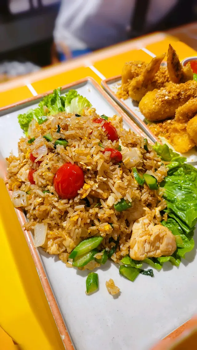 呢日係樂富食lunch見food court幾多選擇,最後就揀咗呢間泰國野試下,睇menu同出餐位見到好幾樣都好吸引🥹炒金邊粉都好有興趣,最後揀咗飯類!炸雞飯 $52油飯乾身粒粒分明👍🏼唔會食落成口油咁。炸雞外脆內嫩,點啲泰式酸辣醬perfect啊🤤跟餐仲送咗碗湯,清清地芫茜蘿蔔好清甜解膩😙全部餐都係五十幾蚊咁上下,性價车幾高,同學仔買學生餐仲有野飲送添,抵食👍🏼食物:⭐️⭐️⭐️⭐️⭐️環境:⭐️⭐️⭐️⭐️⭐️服務:⭐️⭐️⭐️⭐️⭐️(五⭐️為最高分數)查看更多