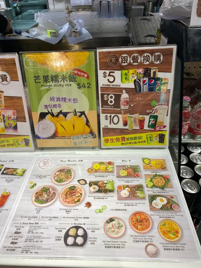之前同家人去樂富廣場喺UNY生活創庫食嘢😋 見到呢間樓錦豐嘅餐牌幾吸引,聽講呢度賣嘅都係正宗泰國食品,由泰國師父主理,手法都係正宗泰國風味😛 而且見到佢價錢都抵食就揀咗呢間,結果真係幾好味😋 推薦比大家!🐥 泰式無骨雞飯我叫嘅係泰式雞飯,成碟雞全部去晒骨,啖啖肉,食得好爽😋!而且雞肉嫩滑之餘又唔油膩,一定要沾埋呢度嘅特色泰式醬料食,多重滋味🤤! 而個飯係雞油飯,香氣十足呀🥳 雞飯仲配一個清雞湯,清甜唔油膩。另外加錢可換購飲品🥤非常滿足。🍜 豬頸肉船湯河湯河嘅CP值好高!濃郁嘅船湯湯底,令我有種返咗泰國嘅滋味😍 而且船麵入面嘅食材又多又大份量,豬頸肉大大塊,又香又爽口😋!🥘 紅咖哩牛腩飯咖哩飯都一樣勁抵食!紅咖喱🍛香辣開胃,濃郁得嚟唔會太濟,而牛腩肥瘦適中,配埋咖哩食香濃惹味,好滿足🥳跟餐可以優惠價錢加購飲品🍋 青檸梳打🧋 泰式奶茶我仲叫咗杯青檸梳打,清爽解膩,好適合而家夏天飲☺️ 而泰式奶茶好香濃😋查看更多