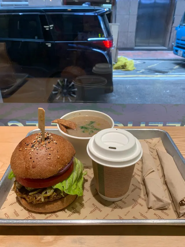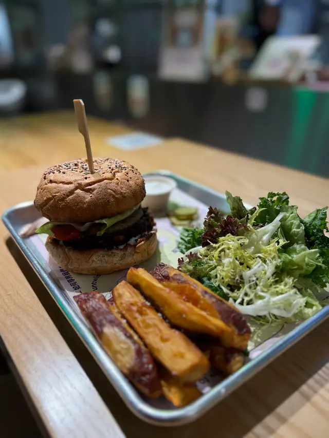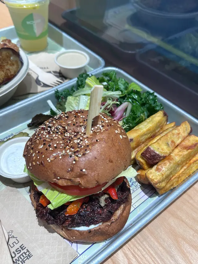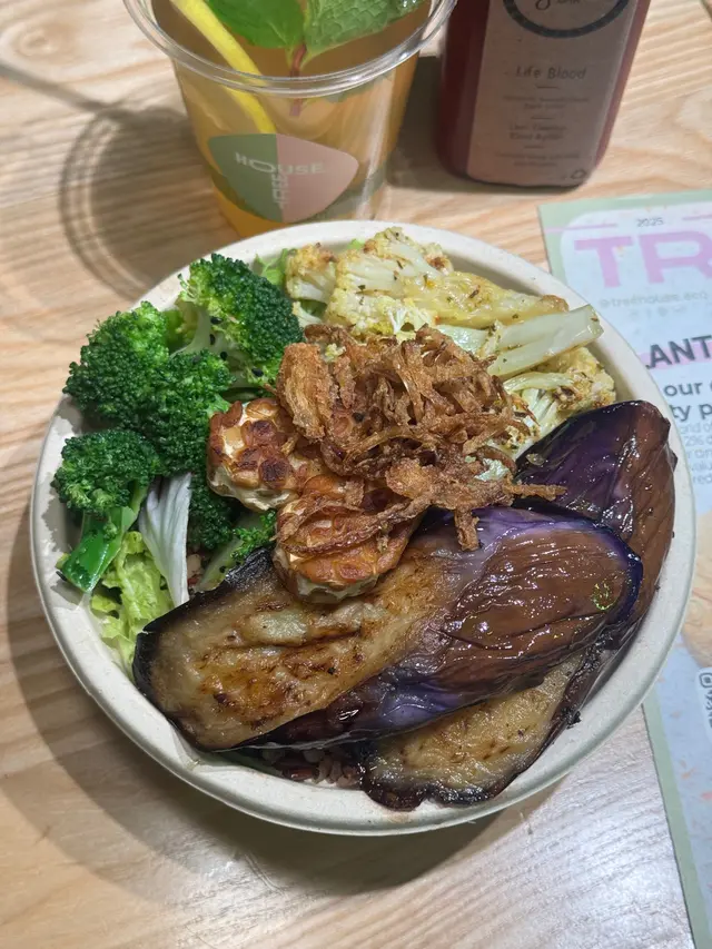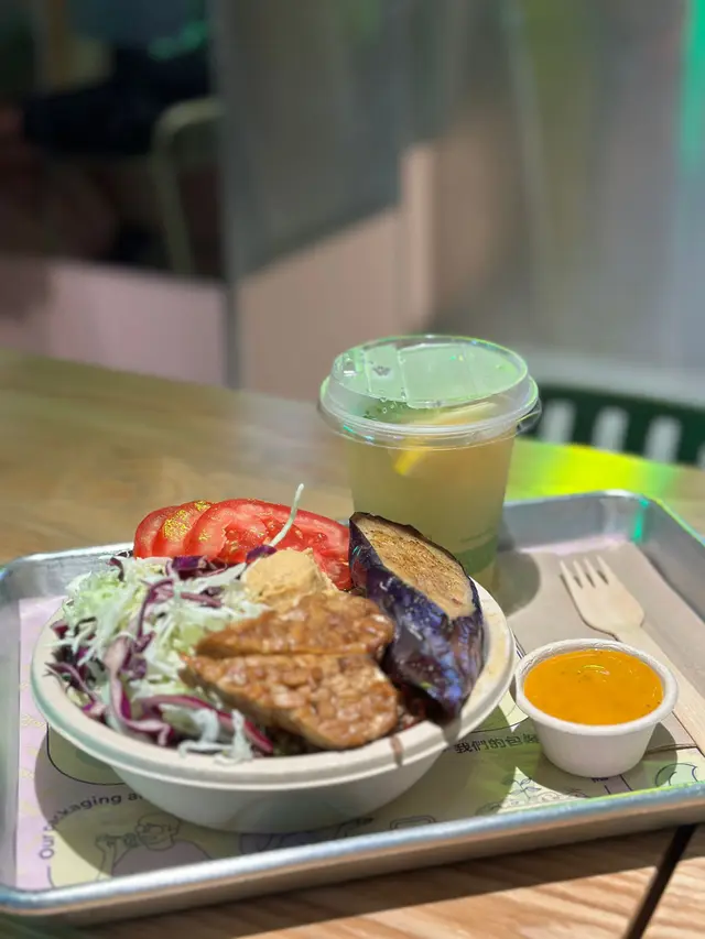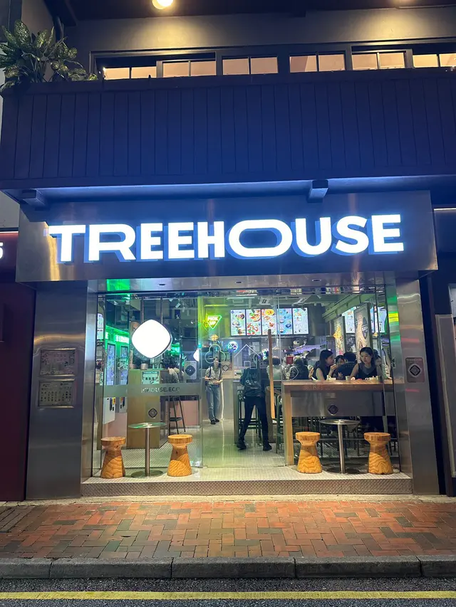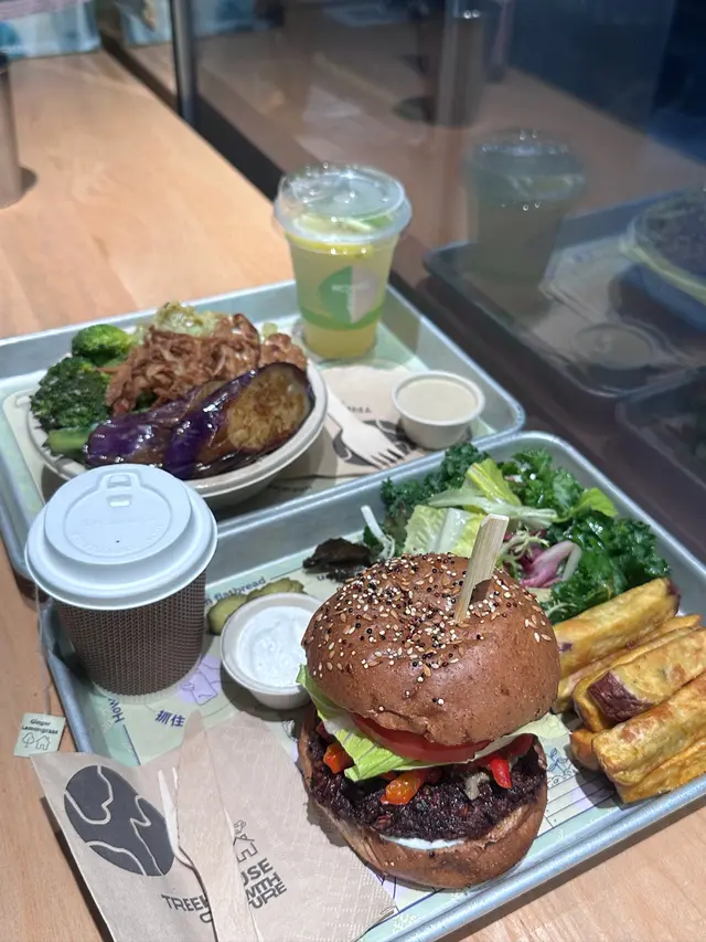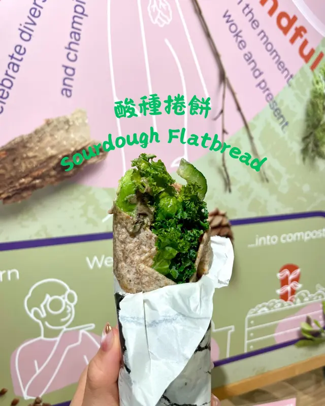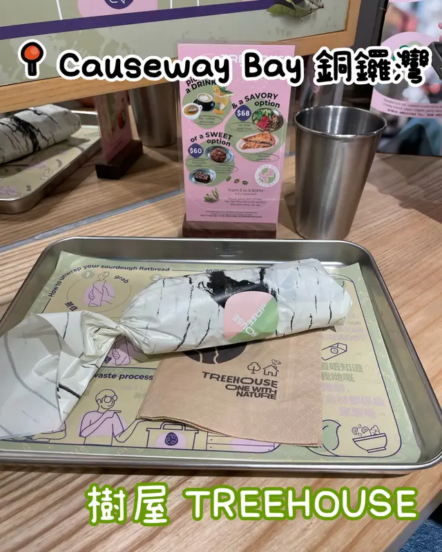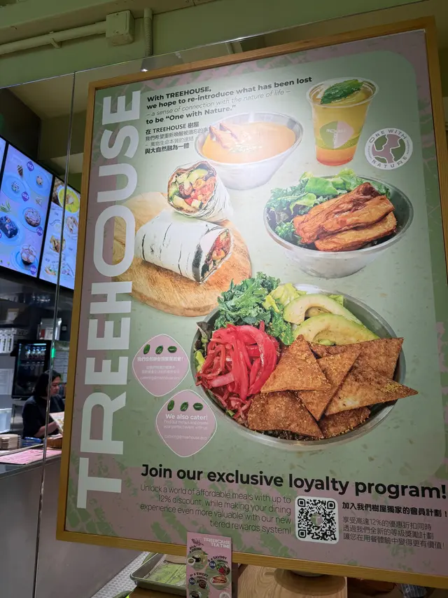 最近去咗銅鑼灣嘅 Treehouse,真係幾有驚喜!成間餐廳走自然風,木系裝修、綠色燈光,好有大自然feel🍃,仲有環保分類垃圾桶、可堆肥區,感覺幾有心思♻️。🌯 Regular Sourdough Wrap(卷餅)呢個卷餅我真係要大力推薦💚!第一啖咬落去就聞到薄荷葉嘅香味,好清新~入面啲配料又多又實在,有大塊番茄🍅、青瓜、橄欖、紅洋蔥,咬落去好爽脆。啲醬料酸酸香香,食落唔膩,成個口感超平衡,健康又飽肚😂。🥗 Treehouse Platter 招牌拼盤個拼盤砌得好靚✨,入面有沙律菜、酸青瓜、橄欖、鷹嘴豆蓉、茄子醬、薄餅片樣樣齊。最出色一定係 Grilled Tempeh(烤天貝)🔥,外層微脆、入面煙韌有咬口,好似食緊烤肉咁!原來係植物蛋白做嘅,高蛋白又無負擔,食完好滿足 😋。🍟 Sweet Potato Fries 番薯條番薯條都唔錯,外脆內軟,甜度啱啱好。配埋個 creamy 醬幾出色,唔會太油膩,食到最後都仲想再加一份🤭。🍋 Lemonade 檸檬特飲飲品都幾清新~檸檬水入面有薄荷葉🍃同檸檬片🍋,酸甜比例啱啱好,飲落去超解膩,好啱配素食。整體嚟講,Treehouse 真係一間食得健康又唔失味道嘅地方👏。食材質素同整體氣氛都對得起個價。下次再嚟,應該要想再試佢哋嘅 Margherita Pizza 🍕~…查看更多