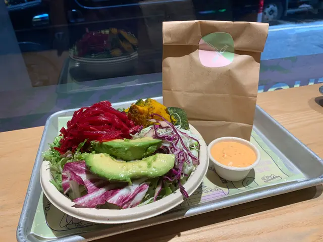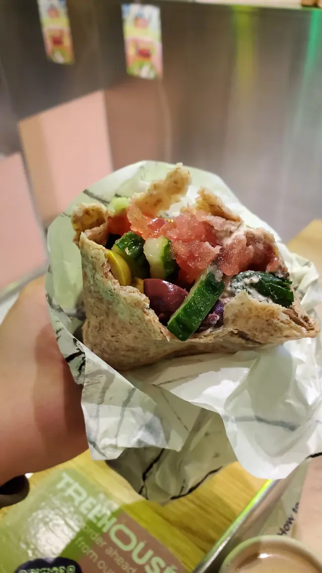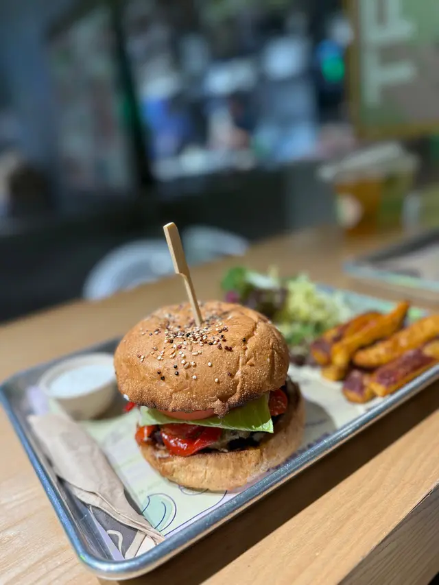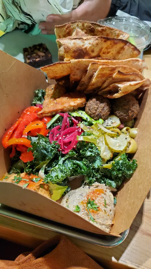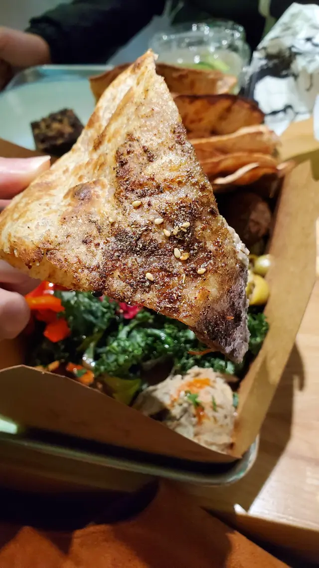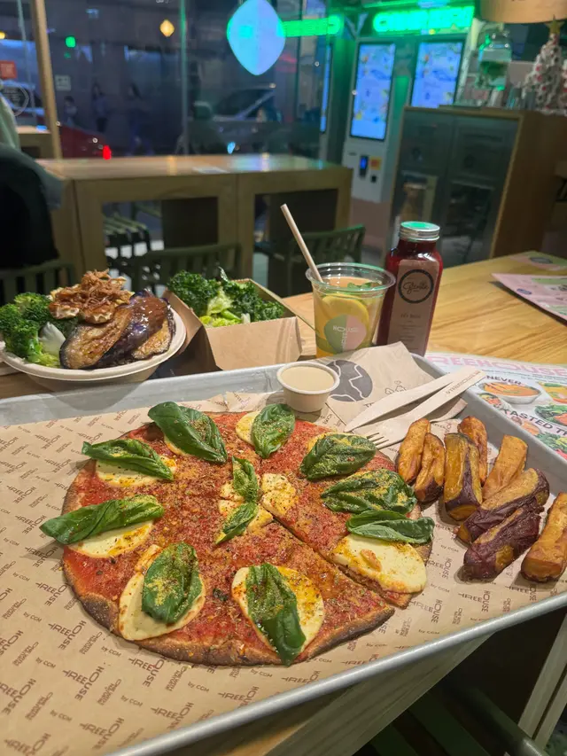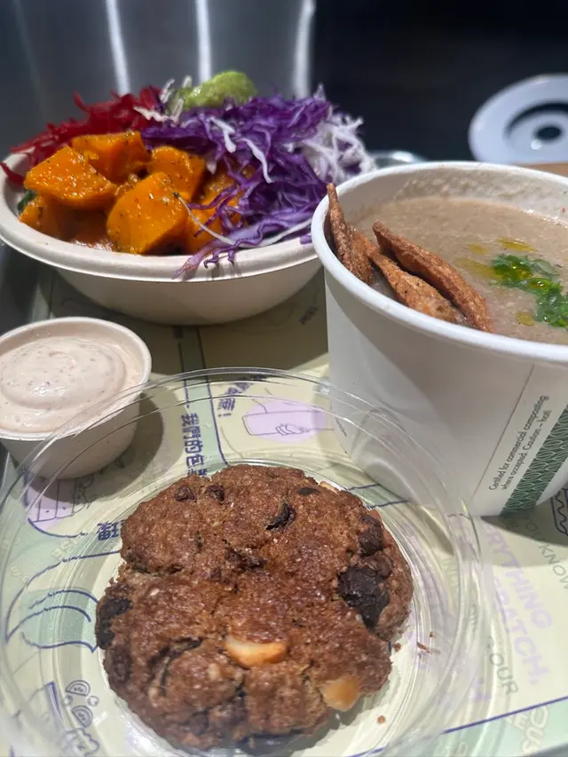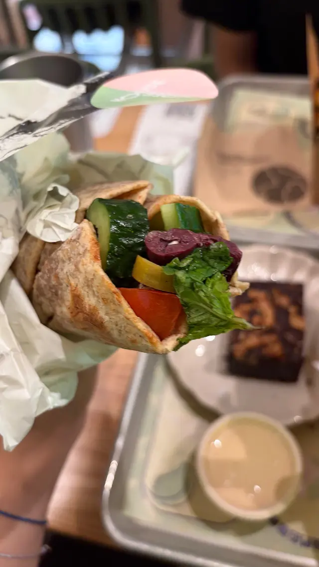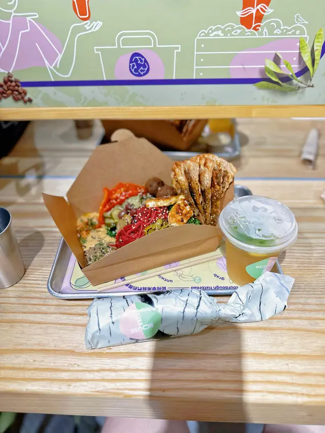 最近去咗銅鑼灣嘅 Treehouse,真係幾有驚喜!成間餐廳走自然風,木系裝修、綠色燈光,好有大自然feel🍃,仲有環保分類垃圾桶、可堆肥區,感覺幾有心思♻️。🌯 Regular Sourdough Wrap(卷餅)呢個卷餅我真係要大力推薦💚!第一啖咬落去就聞到薄荷葉嘅香味,好清新~入面啲配料又多又實在,有大塊番茄🍅、青瓜、橄欖、紅洋蔥,咬落去好爽脆。啲醬料酸酸香香,食落唔膩,成個口感超平衡,健康又飽肚😂。🥗 Treehouse Platter 招牌拼盤個拼盤砌得好靚✨,入面有沙律菜、酸青瓜、橄欖、鷹嘴豆蓉、茄子醬、薄餅片樣樣齊。最出色一定係 Grilled Tempeh(烤天貝)🔥,外層微脆、入面煙韌有咬口,好似食緊烤肉咁!原來係植物蛋白做嘅,高蛋白又無負擔,食完好滿足 😋。🍟 Sweet Potato Fries 番薯條番薯條都唔錯,外脆內軟,甜度啱啱好。配埋個 creamy 醬幾出色,唔會太油膩,食到最後都仲想再加一份🤭。🍋 Lemonade 檸檬特飲飲品都幾清新~檸檬水入面有薄荷葉🍃同檸檬片🍋,酸甜比例啱啱好,飲落去超解膩,好啱配素食。整體嚟講,Treehouse 真係一間食得健康又唔失味道嘅地方👏。食材質素同整體氣氛都對得起個價。下次再嚟,應該要想再試佢哋嘅 Margherita Pizza 🍕~…查看更多