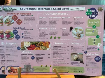 Recently, we wanted to keep fit. Therefore, we searched for some healthy restaurant. We found there is a vegetarian restaurant. We order Banyan set, including sourdough flatbread and salad bowl. Also, we order something sweet - Macadamia Chocolate Chip Cookie. Banyan contains Grilled tempeh, fried eggplant, roasted garlic hummus, cabbage, tomato slices, amba sauce. As soon as it was served, I found it very appealing—the colors were incredibly vibrant. The vegetables were very fresh. The salad is in big portion, we feel full after eating it. Normally, I wouldn’t eat something so healthy and rich; every bite was refreshing and healthy. It went perfectly with the salad dressing,the wrap is yummy, we loved it very much. The chocolate chip cookie is not too sweet, A nice dessert for yummy dinner. To my surprise, it was amazing! This vegetarian restaurant not only serves healthy food but also offers a lot of delicious choices. It turns out vegetarian food can be diverse and creative—definitely worth another visit.…查看更多