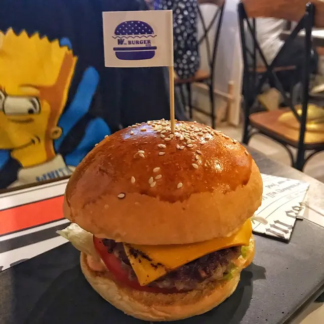今次就试谷德昭导演推介嘅美国谷饲猪扒汉堡。相隔半个月, W Burger结业嘅消息已经多咗人知,所以今次平日放工过嚟要排队,18:45到,等左半个钟,19:15入坐。等候途中问店员拎左menu,一边等一边拣汉堡。讲番今次主角美国谷饲猪扒汉堡$78,加$28升级做套餐,跟餐有小食及饮品。小食拣左纽伦堡肠,饮品Coke Zero。首先,谷饲猪扒系整个汉堡嘅灵魂,大大块,有成cm咁厚,煎得刚刚好,外皮香脆,内层软腍而无筋,咬落去啖啖肉,好多肉汁。每一啖咬落去都可以一啖过,唔会连筋,所以唔会食到le gum hea