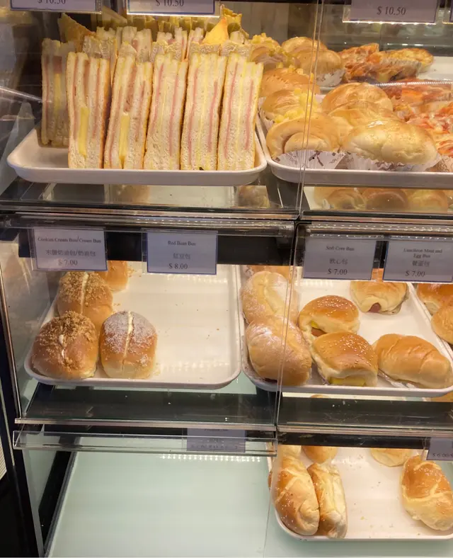 麵包款式好多,當中有啲款都幾特別不過其實價錢牌同盤上嘅麵包唔相符😂,牌上寫吞拿魚餡法包,點知係法蘭克福腸法包🤪 又將芝士包放咗係肉鬆包嘅牌下面🤪不過係幾好食,撞啱佢新鮮出爐😋但應該真係唔太衛生,見住老闆收完錢又用手掂到麵包!查看更多