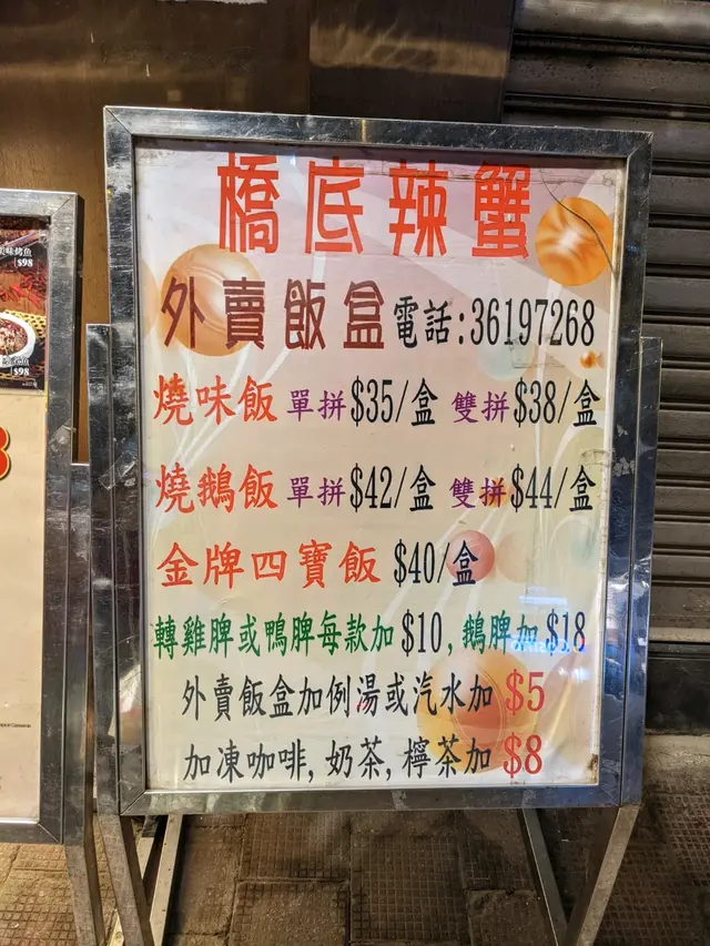 橋底辣蟹 (雅閣大廈) (湾仔) 网址: https://s.openrice.com/QrLS0aIG000 地址: 香港灣仔駱克道421-425號雅閣大廈地下至3樓 电话: +852 28931289