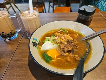 原来做紧下午茶八折,一样份量,畀完钱就坐低等食,装修骨骨子子, 环境唔错,识食牛肉面一定系加珍珠奶茶,牛肉够晒淋同入味,最正系个汤好香药材味,好足料,牛肉面加珍珠奶茶出面唔使$100都要$98一半嘅价钱可以食到真系超值,原来排队真系有原因,连小妹一向好少写食评嘅都忍唔住要出返个post 建议可以狗冲去食