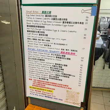连续两天到火炭银禧探朋友, 知道街市有一间cafe小店, 即管入去逛逛。位置非常好找, 街市一入转左就是了, 很容易找到, 加上街市内的招牌统一式样, 清晰可见。一望过去, 店子真的不大呀, 如果堂食的话, 有2张高身的吧台椅子。第一天, 我试了一杯小白flat white(iced)。flatwhite与latte的分别就是奶泡的比例 。结果这杯小白的评分颇高。不嗜甜的我饮下去时倍感细滑, 软绵绵的感觉。第二天, 正正是午餐的时间, 再试试店内各样的美食吧。店内有一块黑板仔, 想不到吃甚么, 即管可以参考推介, 不过黑板上如果可以加上价钱, 字体小一点, 空间多一点, 再多一些留白的地方, 看上去应该会更配合这小店cafe。(sorry, 职业病发作<设计师>)昨天点了加奶的咖啡, 平日饮开handdrip的我, 就想清新一点, 于是试了一杯橙皮mojito coffee, 炎夏中这杯咖啡确实有点特别。上层是啡, 底层是mojito 糖酱, 开初饮用时, 有一点点的苦, 但慢慢的, 再混和底部的糖浆, 复杂的效果便出来了。苦中带甜, 就像人生一样吧。食物方面, 辣鸡肉潜艇, 好味, 因为本身长包包有烘过, 脆脆的, 绝不欺场, 加上鸡肉带有微辣, 很是醒胃。饱面再有小量的mustard, 但不会抢得太多, 不用担心, 只是一个小点缀的味道。竹炭芝士汉堡 - 简单汉堡一个, 听闻牛肉是自家打成的, 牛肉很juicy, 味道不错, 份量不是太大的, 适合女生食用。蚬肉意粉- 意粉的软硬度刚好, 可能笔者爱较硬身的意粉。不过这个意粉略为淡口, 可稍为多加一点的调味及蒜片。salami pizza - 好香好香, 好多料好多料, 超好味呀, 相反这个pizza浓味了一点, 不过下次我还是会点这一个吧。如买食品,加钱便有饮品,相当化算。 笔者有点小意见,如自携食物盒/杯,可以有优惠那就更好了‼ 因为买得的, 也真的是住楼上的街坊吧。