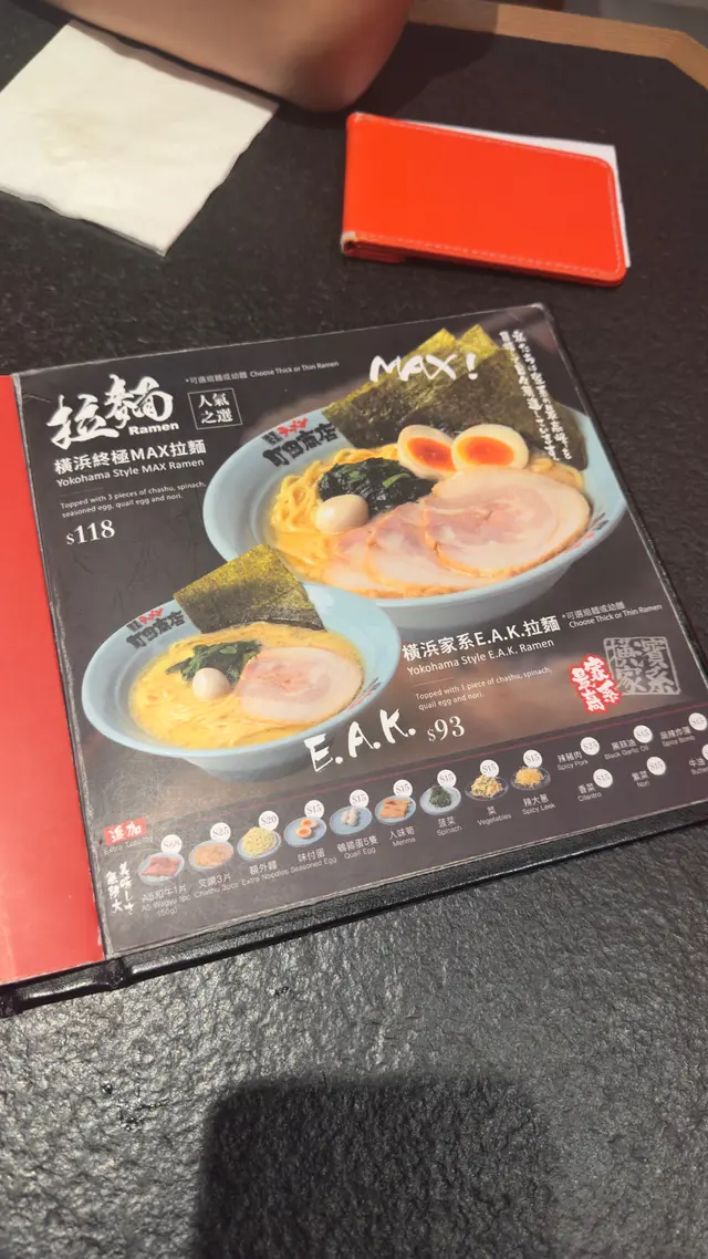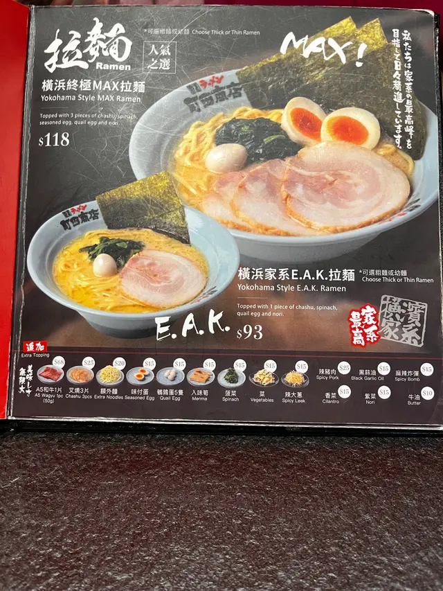 嗰日咁啱好想食拉麵,就喺係附近搵吓有冇,跟住見到呢間好似唔錯,就入咗去試~咁啱嗰日冇乜人,所以唔使等位就有得入去!後尾先知原來平時都好多人排隊🤣-🍜橫浜終極MAX拉麵$118呢個好似係佢哋嘅招牌,一於就試吓!食落又真係唔錯,湯底幾濃郁,啲麵都幾掛湯,而且啲拉麵嘅軟硬煮得啱啱好~另外個拉麵本身已經有叉燒同溏心蛋!唔知有冇人同小編一樣食拉麵一定要有溏心蛋😆😆呢間喺airside嚟講唔錯嘅選擇!食物質素幾高,而且價錢唔算貴,都明點解咁多人會排隊食😋…查看更多