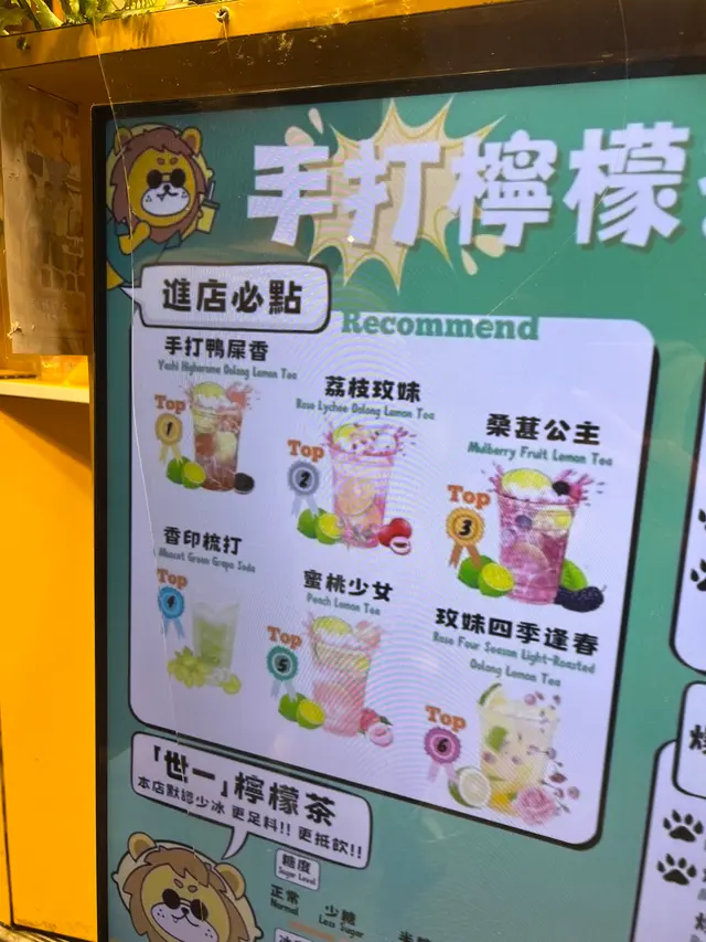 在旺角吃完晚飯,轉過肥姐這邊,還是這麽多人排隊🙈。突然被旁邊以Q版獅子🦁為主題的手打檸檬茶飲店吸引住🤩,好可愛😍😍的獅子🦁。不誇張,完全為了這隻QQ獅子去買了兩杯喝的😆😆,我逼✊️我朋友陪我一齊喝。還好挺好喝的,否則我朋友想要打我🤪🤪🤪。店員每杯都出盡力手打,手瓜想必都起𦟌💪了。✴️手打鸭屎香🍋 $32 (半糖)我點的,我喜歡鴨屎香的味道,我不會形容大概是甚麼味道,就挺合我口味。配上人手爆打過後的檸檬,檸檬跟茶完全融合在一起,每啖都嚐得到打碎了的檸檬果肉,特別清新,半糖剛好,不會很甜,更能品嚐到檸檬鴨屎香的純粹。✴️爆爽渣女梳打 $35 (正常糖)我朋友點的,這杯酸甜酸甜的,有淡淡果香,氣泡充足,我朋友說幸好點正常糖,如果少糖就會酸,現在這樣就剛剛好,裏面還有一粒一粒像啫喱一樣的Q彈波波🫧,口感有趣。她說在這個還是35°🔥的嚴夏,簡直透心涼🌬❄️。原來買滿3杯還有一部電風扇仔送,我朋友發我照片才發現,氣死了😫,如果買的時間知道,我保證會為了它多買一杯。只有留待下次了,希望不要這麼快換完,我為了它一定再來,等等我🥹。查看更多