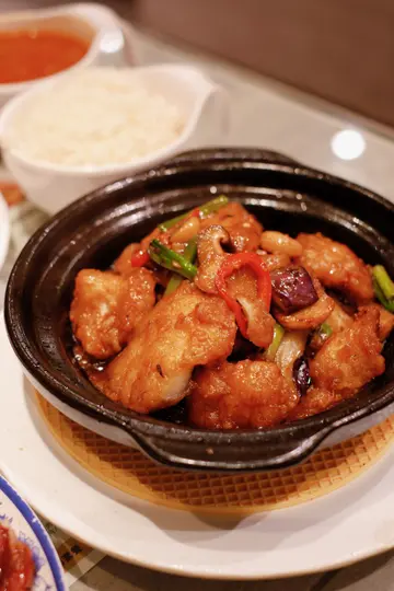 观塘柠檬冰室一向是我觉得平靓正的香港茶餐厅!提供茶餐厅美食、无论小菜、烧味、意粉及铁板餐都好吸引,环境宽敞且卫生舒适💛烧鹅髀烧鹅髀烧至微㶶边,红润有光泽;脂肪比例刚好肉质嫩滑多汁,好滋味菠萝🍍咕噜肉鲜香菠萝🍍开胃可口,嫩滑咕噜肉入味细致充满酸甜味!海南鸡饭鸡肉肥瘦均匀,滑溜溜配酸辣酱味道层次丰富,送埋油饭一流饮料加钱$8 便有特色杏仁蛋白茶养生又美味!杏仁控的我觉得是一个好好的糖水, 满足感更多!