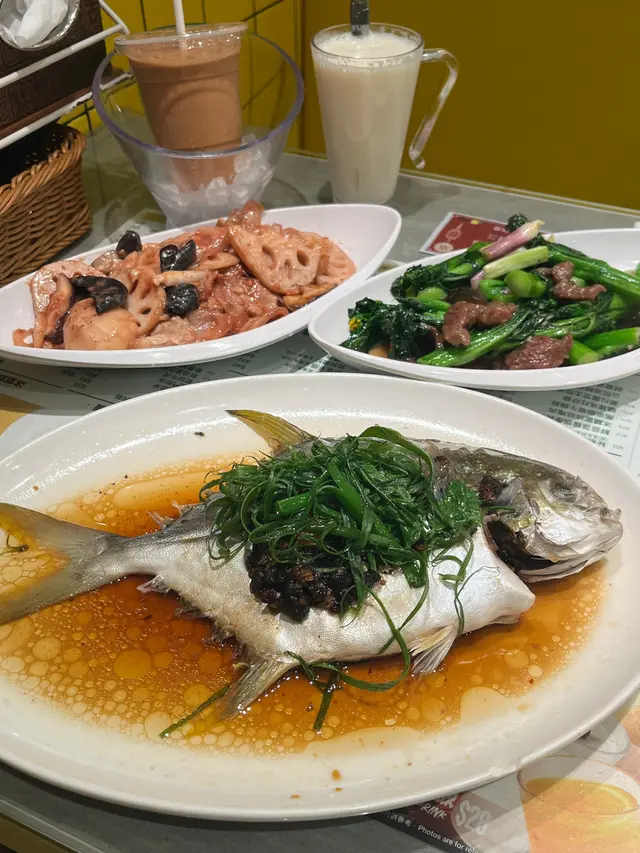 檸檬冰室嘅晚市小菜好抵食!今晚同屋企人嚟食 dinner,叫咗三個餸都好好味🥰清蒸倉魚 配絲苗白飯🐟🍚 鮮味十足,魚肉好嫩滑!搭配簡單的調味,完美保留魚的鮮美🤤 勁大條魚一個人都食唔晒😆南乳藕片炒腩片 配絲苗白飯🥓🍚 南乳醬汁好香濃!藕片脆嫩,腩片醇厚,整道菜口感豐富,配上絲苗白飯的清香完美平衡味道~菜心苗炒牛肉🥩 配飯食必點😍 牛肉鮮嫩多汁,菜心清脆爽口,美味又有營養💚無冰奶茶🥤香濃醇厚,口感絲滑,好唔錯👍鮮磨蛋白杏仁茶🥛口感滑順,杏仁的香氣濃郁,值得一試😙…查看更多
