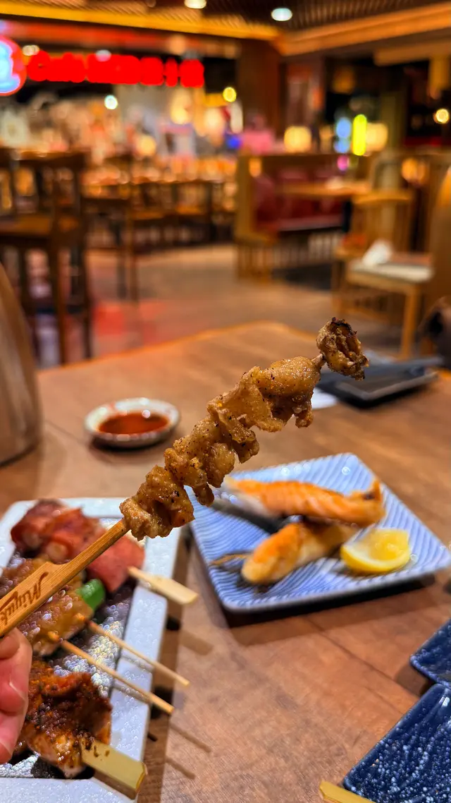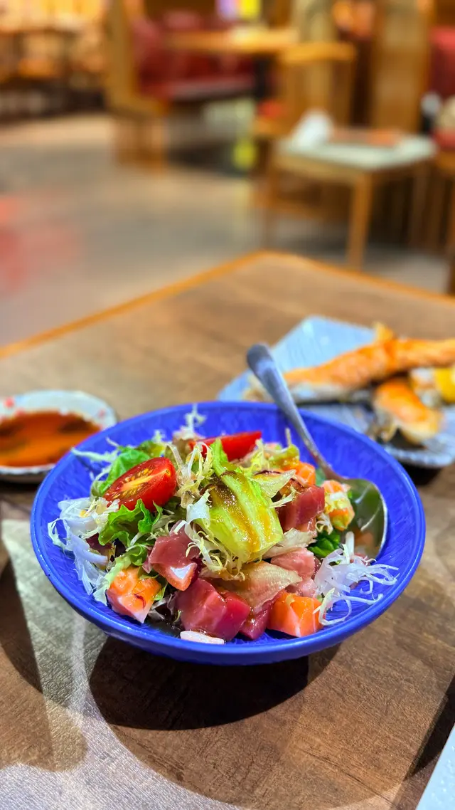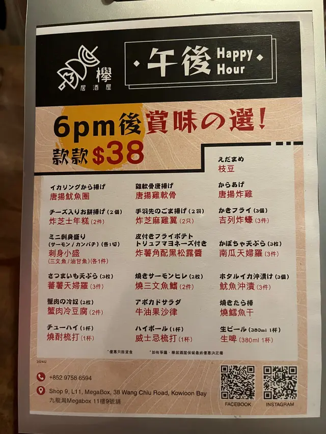 最近收工去左附近Megabox既【欅居酒屋】食晚餐,居酒屋當然食下D串燒、小食啦。角切魚生沙律:魚生(三文魚、吞拿魚等)新鮮厚切,搭配沙律菜,淋上和風醬汁,清爽開胃!唐揚魷魚圏:外皮酥脆不油,魷魚彈牙有嚼勁,點少少蛋黃醬更惹味,佐酒一流~天婦羅南瓜:南瓜香甜軟糯,天婦羅衣薄脆輕盈,沾上蘿蔔泥天汁,平衡油膩感。炭燒牛舌:厚切牛舌炭香十足,口感Q彈多汁,加上葱同洋葱更香口!串燒:雞皮、雞翼、明太子雞肉、美國牛小排、豚肉秋葵卷、七味燒豬頸肉、煙肉車厘茄雞皮:烤至焦脆,油脂香氣逼人!雞翼:外皮香脆,肉質嫩滑多汁~明太子雞肉:雞肉加上鹹香明太子,非常香口。美國牛小排:肉質軟嫩,油脂豐富豚肉秋葵卷:豚肉焦香,秋葵清爽解膩!七味燒豬頸肉:彈牙有嚼勁,七味粉香辣惹味~煙肉車厘茄:煙肉鹹香搭配爆汁車厘茄,口感豐富!松葉蟹肉帆立貝卷:松葉蟹肉絲鮮甜,帆立貝嫩滑,醋飯酸度適中,整體鮮味十足!鵝肝鰻魚石鍋飯:鵝肝豐腴入口即化,鰻魚軟嫩甜鹹,石鍋飯底形成焦脆飯焦,拌勻食用層次感滿分!…查看更多