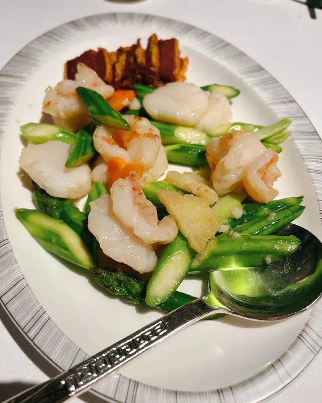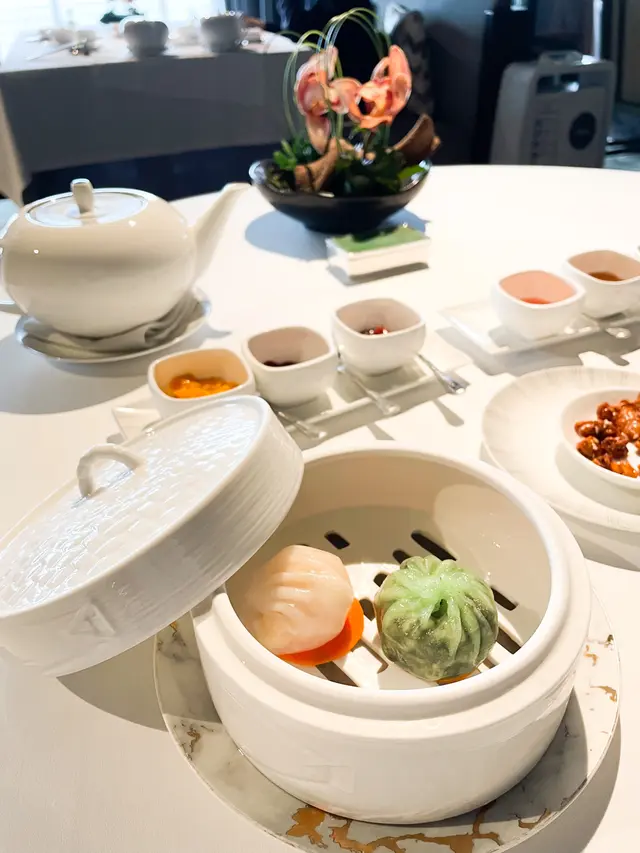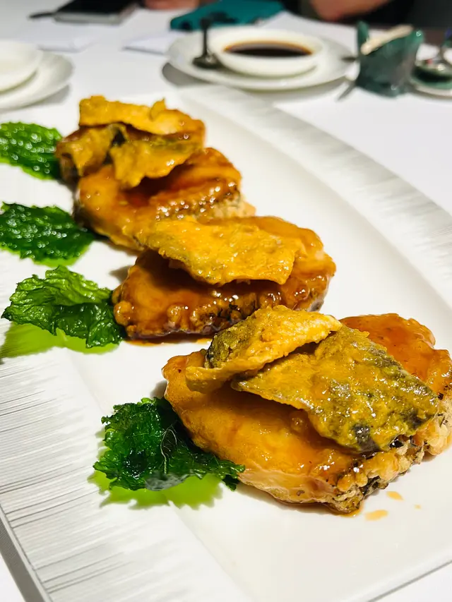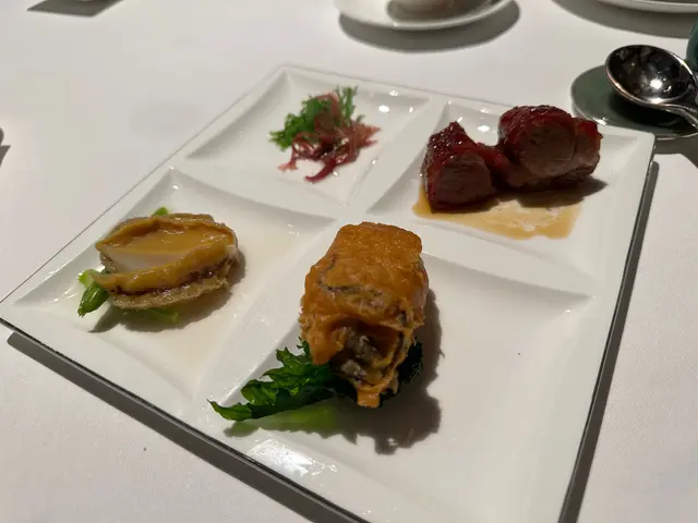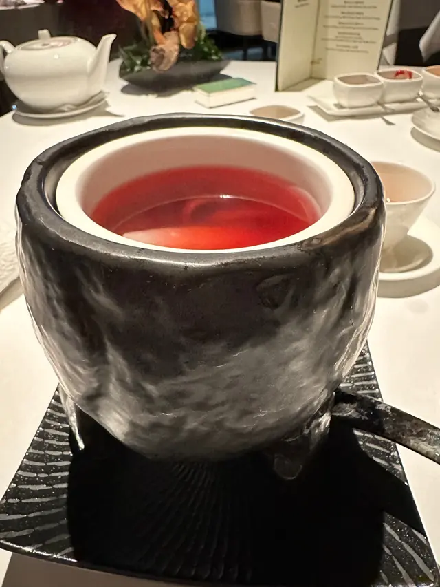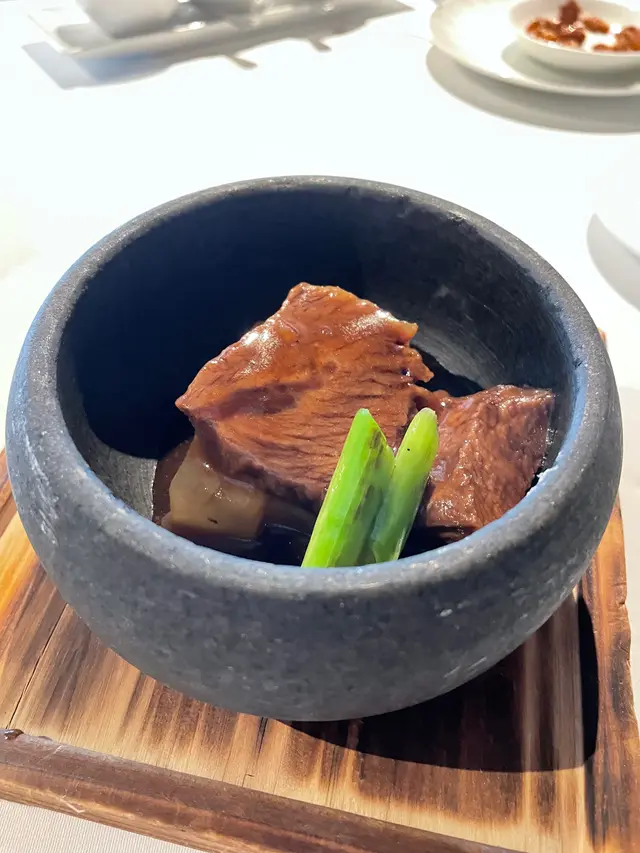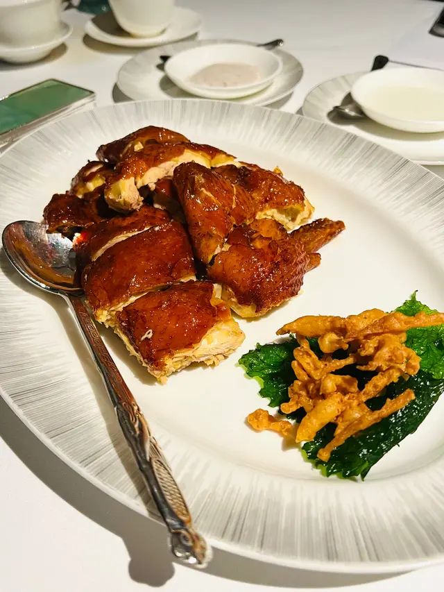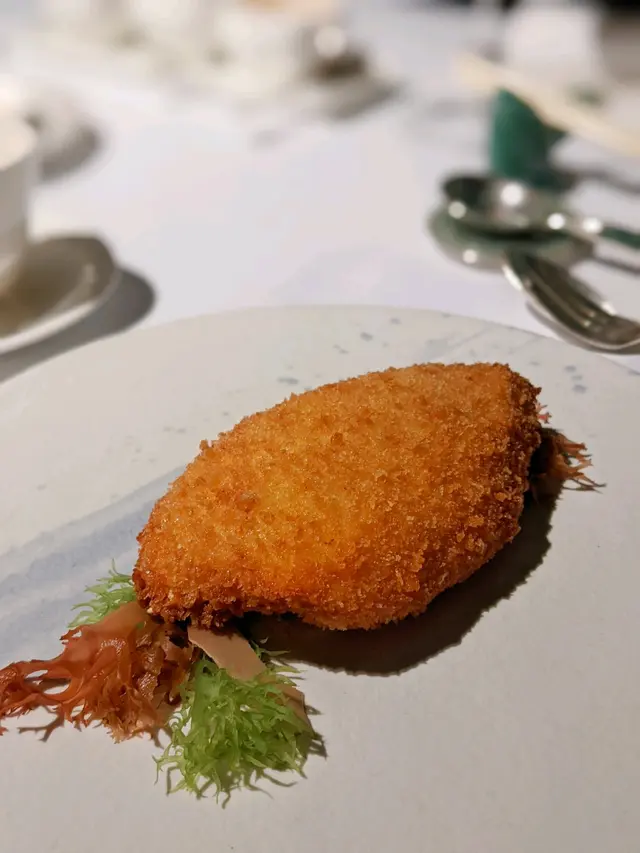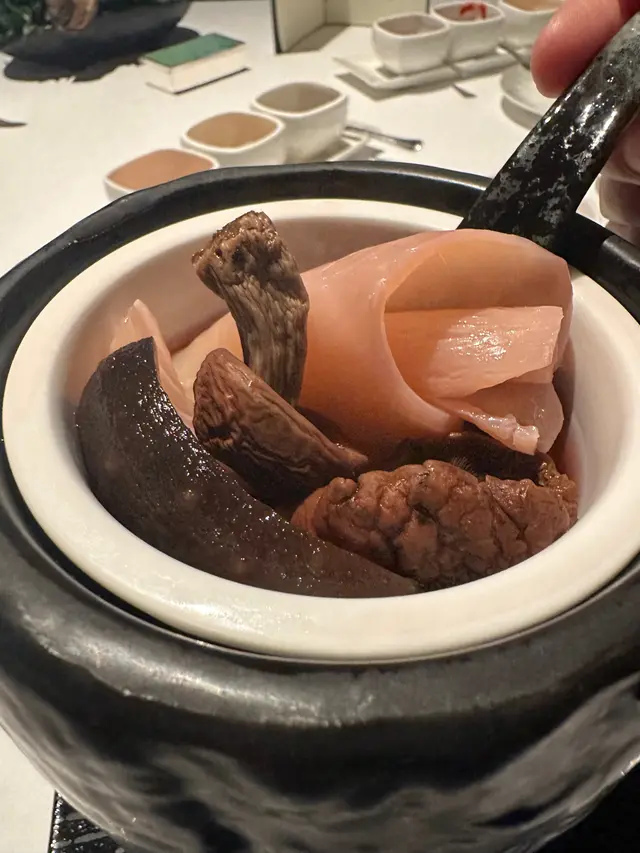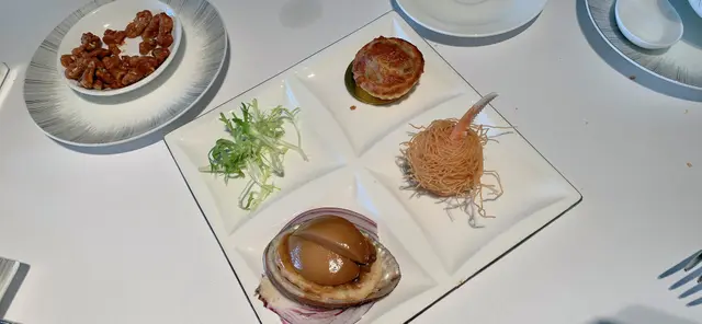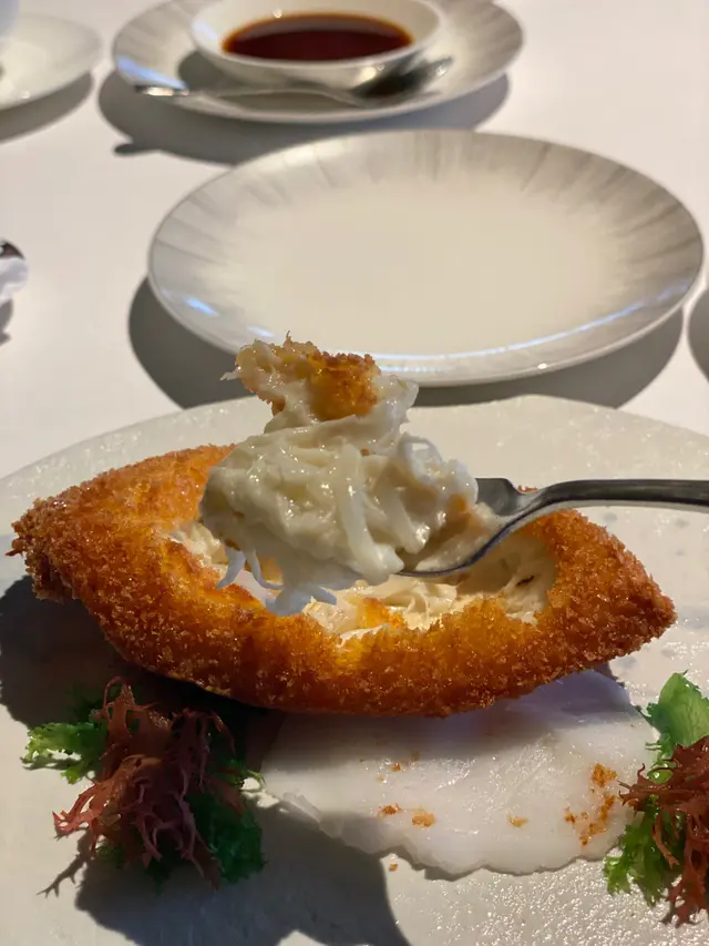 前菜琥珀合桃都絶不馬虎,香脆少甜,合桃再加芝麻既香味,實在係太香脆吸引。要不斷提醒自己唔好食咁多,因為個套餐有太多嘢食,唔好太快填飽個胃。另一前菜係醃西瓜,炎暑好滋味。正式上第一道菜,係雞絲海蜇,擺盤精美,夜光杯盛載,好吸睛。花膠響螺湯,湯底清甜滋補,仲有大大件花膠同埋響螺。鮮百合明蝦球脆釀鮮蟹蓋,大大隻,外殼炸得剛剛好帶點焦脆,蟹蓋內釀滿白汁洋蔥蟹肉加點炸蟹拑,又係炸到剛剛好,啖啖肉大滿足蒜片雞縱菌爆石窩和牛,和牛肉嫩雞縱菌鮮美,熱石窩上枱,蒜香四溢好惹味竹笙扒上素,又可以再清一清味蕾迎接下一道菜魚香帶子脆香苗,成功令唔好葱既我眼前一亮,第一次覺得青葱係整道菜既靈魂,完美提升香味。青葱帶子脆米淋上熱魚湯,非常出色。香芋燉鮮奶, 雖然已經食到好飽,仍然唔捨得放棄。但竟然,仲送一個甜品架...究竟個胃有幾大先食得晒個餐😂😂😂*Dining city restaurant week tasting menu**如果繼續有dining week就好嘞🤤…查看更多