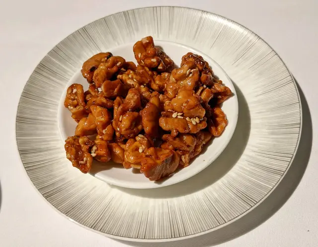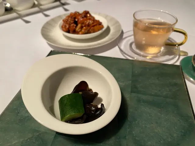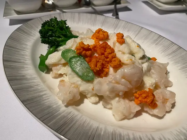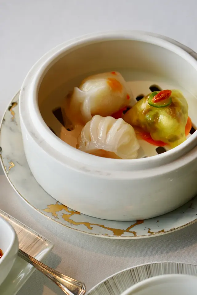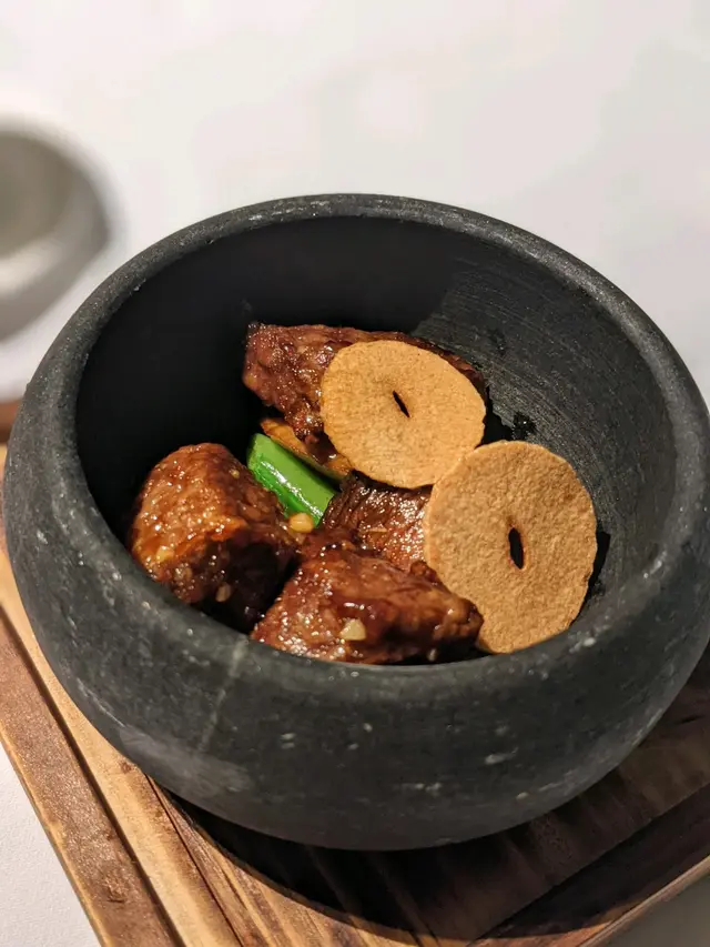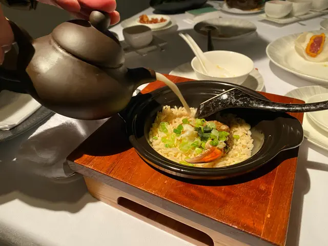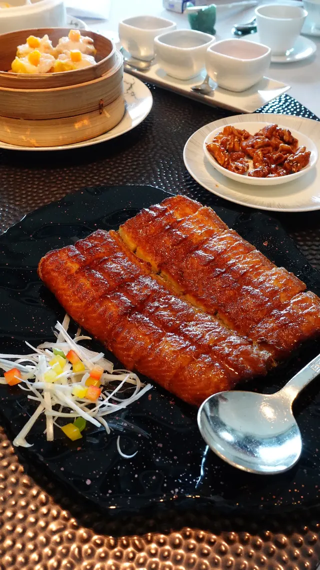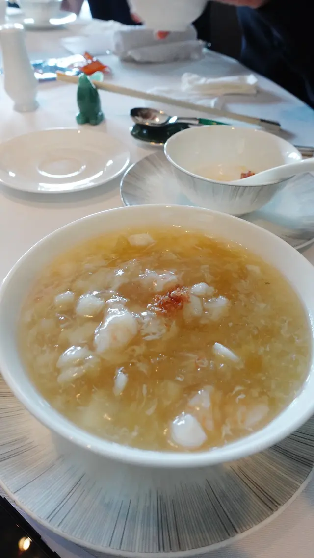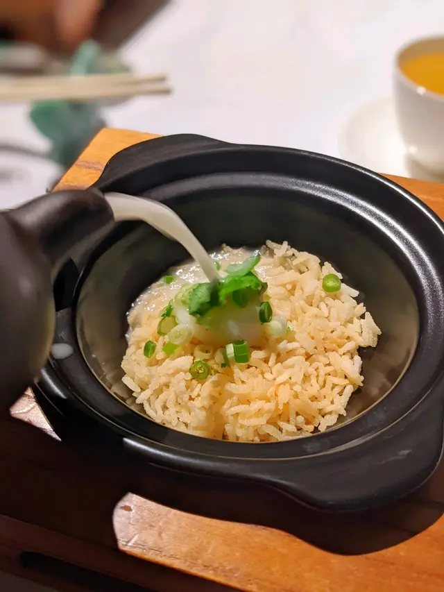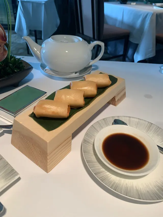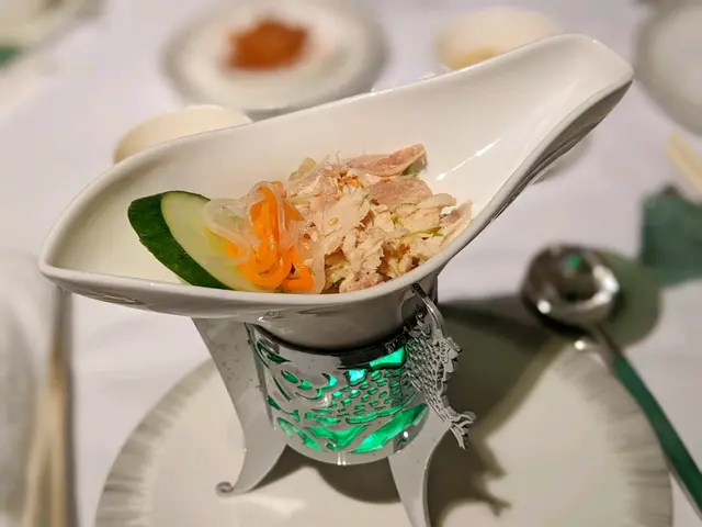 前菜琥珀合桃都絶不馬虎,香脆少甜,合桃再加芝麻既香味,實在係太香脆吸引。要不斷提醒自己唔好食咁多,因為個套餐有太多嘢食,唔好太快填飽個胃。另一前菜係醃西瓜,炎暑好滋味。正式上第一道菜,係雞絲海蜇,擺盤精美,夜光杯盛載,好吸睛。花膠響螺湯,湯底清甜滋補,仲有大大件花膠同埋響螺。鮮百合明蝦球脆釀鮮蟹蓋,大大隻,外殼炸得剛剛好帶點焦脆,蟹蓋內釀滿白汁洋蔥蟹肉加點炸蟹拑,又係炸到剛剛好,啖啖肉大滿足蒜片雞縱菌爆石窩和牛,和牛肉嫩雞縱菌鮮美,熱石窩上枱,蒜香四溢好惹味竹笙扒上素,又可以再清一清味蕾迎接下一道菜魚香帶子脆香苗,成功令唔好葱既我眼前一亮,第一次覺得青葱係整道菜既靈魂,完美提升香味。青葱帶子脆米淋上熱魚湯,非常出色。香芋燉鮮奶, 雖然已經食到好飽,仍然唔捨得放棄。但竟然,仲送一個甜品架...究竟個胃有幾大先食得晒個餐😂😂😂*Dining city restaurant week tasting menu**如果繼續有dining week就好嘞🤤…查看更多