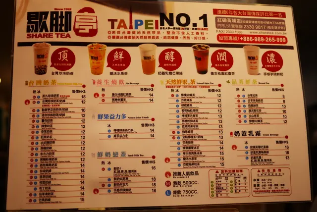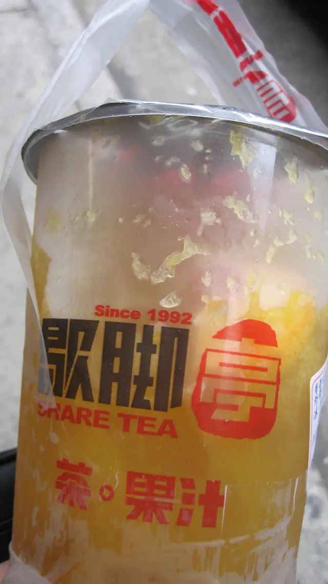There are so many Taiwanese drink shops available, its so hard to choose, luckily this was a good choice.I chose the fruit tea, which contained orange juice, passionfruit, apple, and jasmine.The fruit tea here is different to the other fruit teas from Taiwanese joints, the taste heavily on juice with Jasmine essence.It was like drinking watered orange juiced without the sourness, with a strong hint of jasmine essense, then after tones of passionfruit. You can actually see the orange pulp in it too.I really liked it, and hope that there will be a HK branch soon, it seems healthy too as there is real juice in it.The cup used for the drink was a sturdy plastic cup with a cute handle to hold it.…查看更多