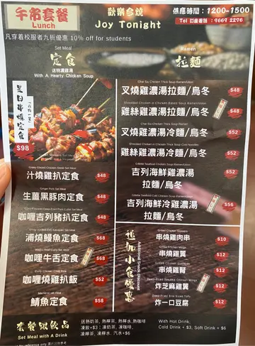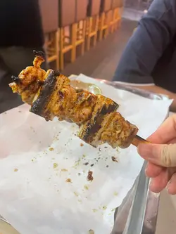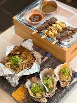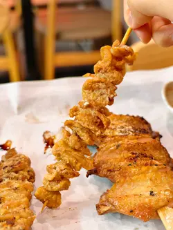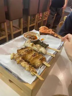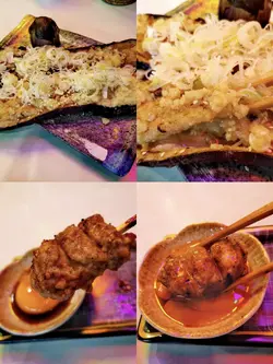 一间在居民区内的烧烤小店,餐厅不算很大,但提供的款式挺多的,更有多款海鲜,而且师傅的烧烤手艺都挺不错,没有烧过火,价钱也不算贵,能吃过瘾!明太子炸薯条(32元)用的是波浪薯条,口感更酥脆,配上香滑鲜甜的明太子酱,挺惹味。大葱鸡肉串(18元)烧完以后肉汁挺丰富的,加上脆嫩的大葱更解腻。鸡皮串(22元)这里是偏香脆的口感,味道咸香。鸡肝串(18元)烧到7—8成熟,口感鲜嫩绵滑,有鸡肝香味。鸡颈肉串(28元)肉质结实有弹性,表面焦香。鸡翼串(18元)性价比错,想不到有3只鸡翼,肉质挺嫩。烟肉年糕(24元)表面焦香的烟肉包裹住软糯的年糕,味道咸香。炸猪大肠串(26元)炸得非常香脆,但又有大肠的香味,本身经过卤制,再加上酸甜的酱汁,更惹味。烧猪颈肉串(24元)烧得焦嫩又有油香。韭菜(10元)份量很足,口感脆嫩。翠肉瓜(10元)质相挺不错,吃起来质感滑嫩,香甜多汁。日本年糕(18元)中间非常软糯,吃起来有米香,加了酱油来调味。蒜蓉烧原条茄子(38元)除了蒜蓉还加了挺多的葱白,吃起来蒜香味十足,茄子滑嫩多汁。盐烧大赤虾(18元)性价比不错,真的挺大只的,口感弹牙蜜糖烧厨师肠(8元)用的是真正的厨师肠,味道是童年回忆。炸章鱼小丸子(18元)虽然是炸的,但小丸子比想像中的要足料,每粒都有2—3粒大大粒的章鱼肉,口感爽滑,外脆内软的。鹅肝多士(98元)面包松软,鹅肝有油香。可乐(16元)还可以有冰底和柠檬,真的好评!…查看更多